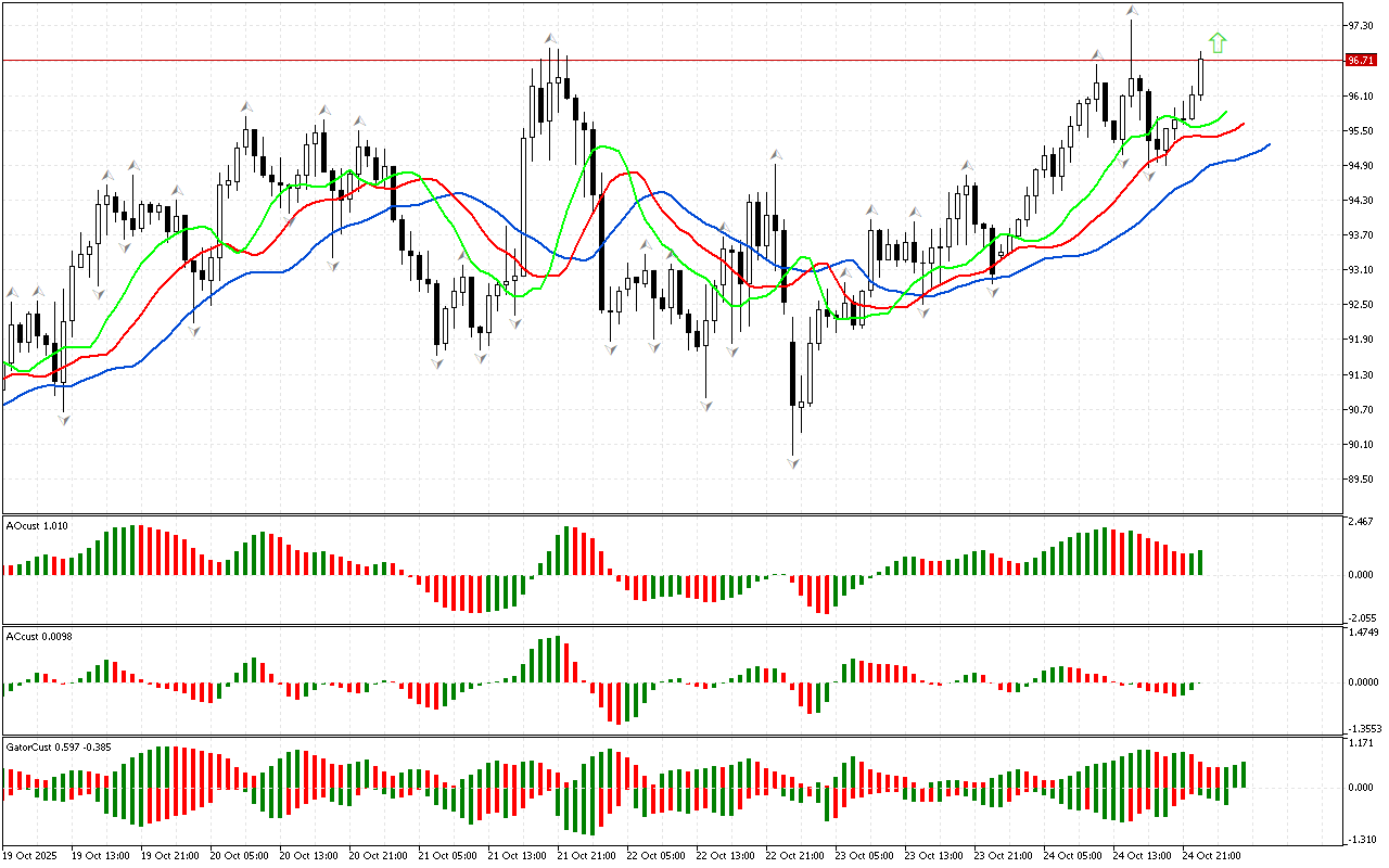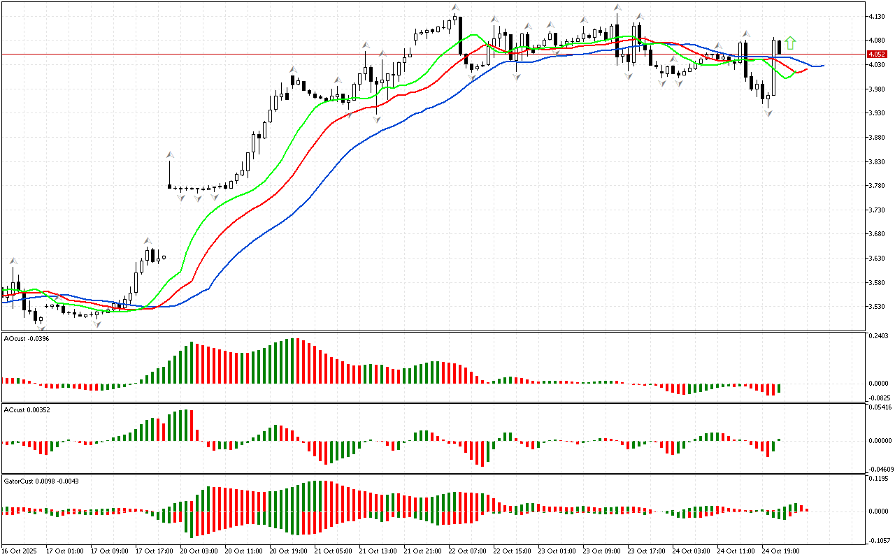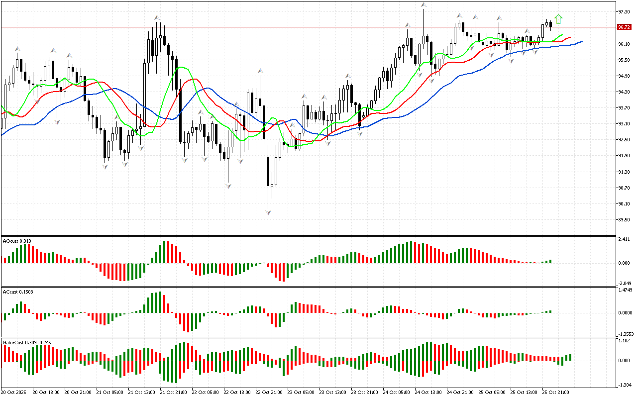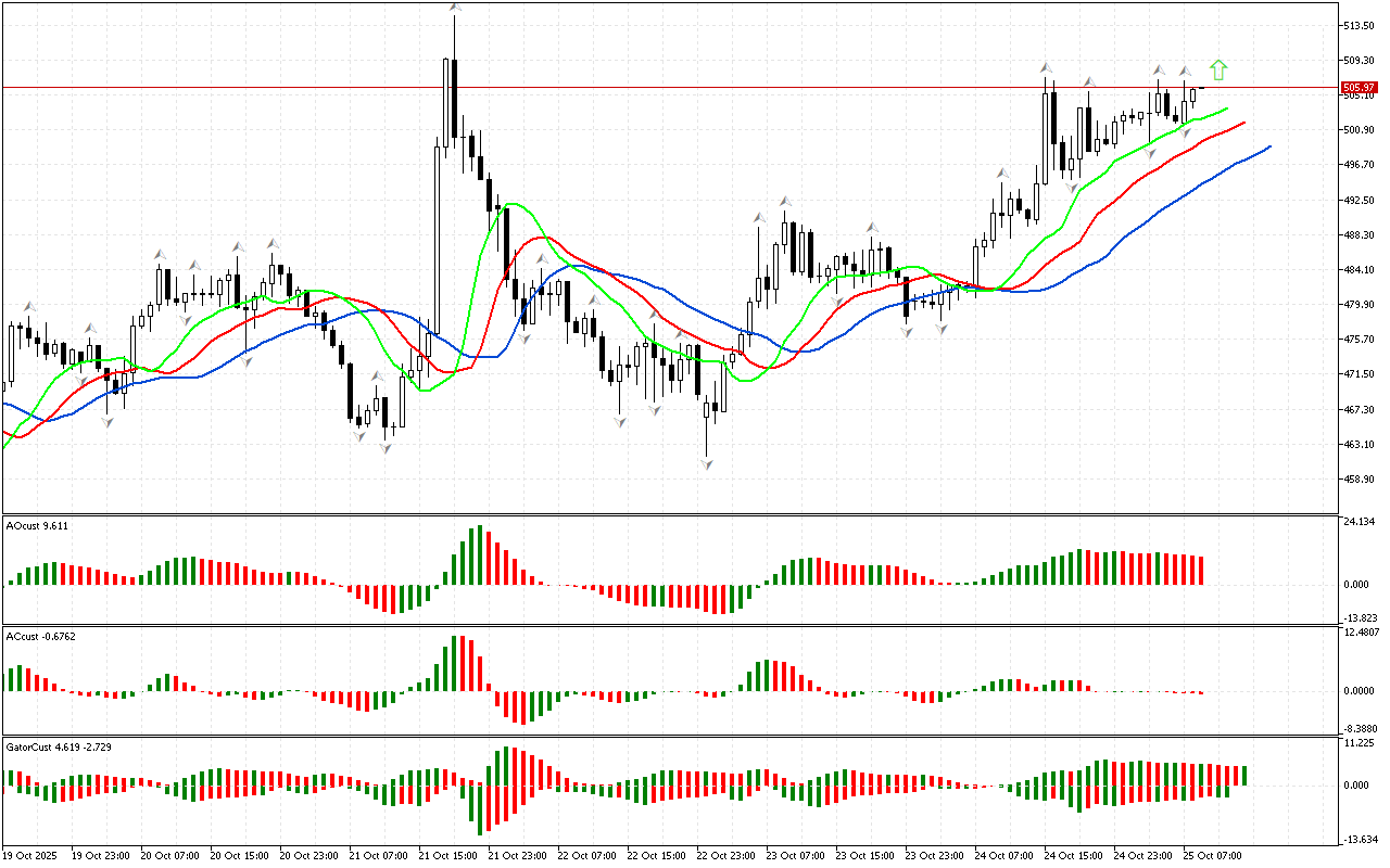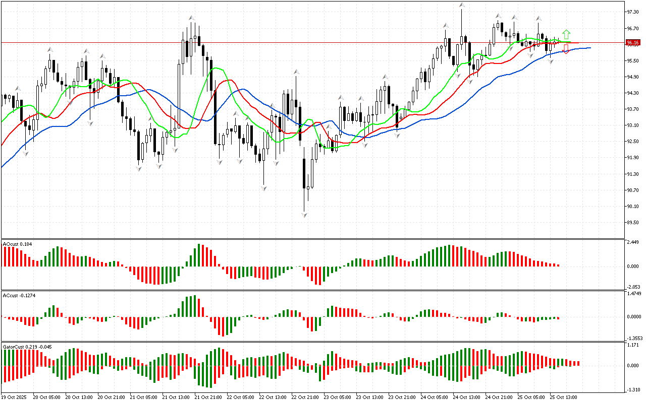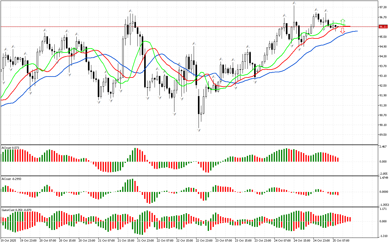 Narx grafikdagi Alligatorning og’zi ustida joylashgan yuqori fraktaldan yuqoriga ko’tarildi. Ushbu signal tufayli biz faza maydonini shimoliy deb belgilaymiz va…