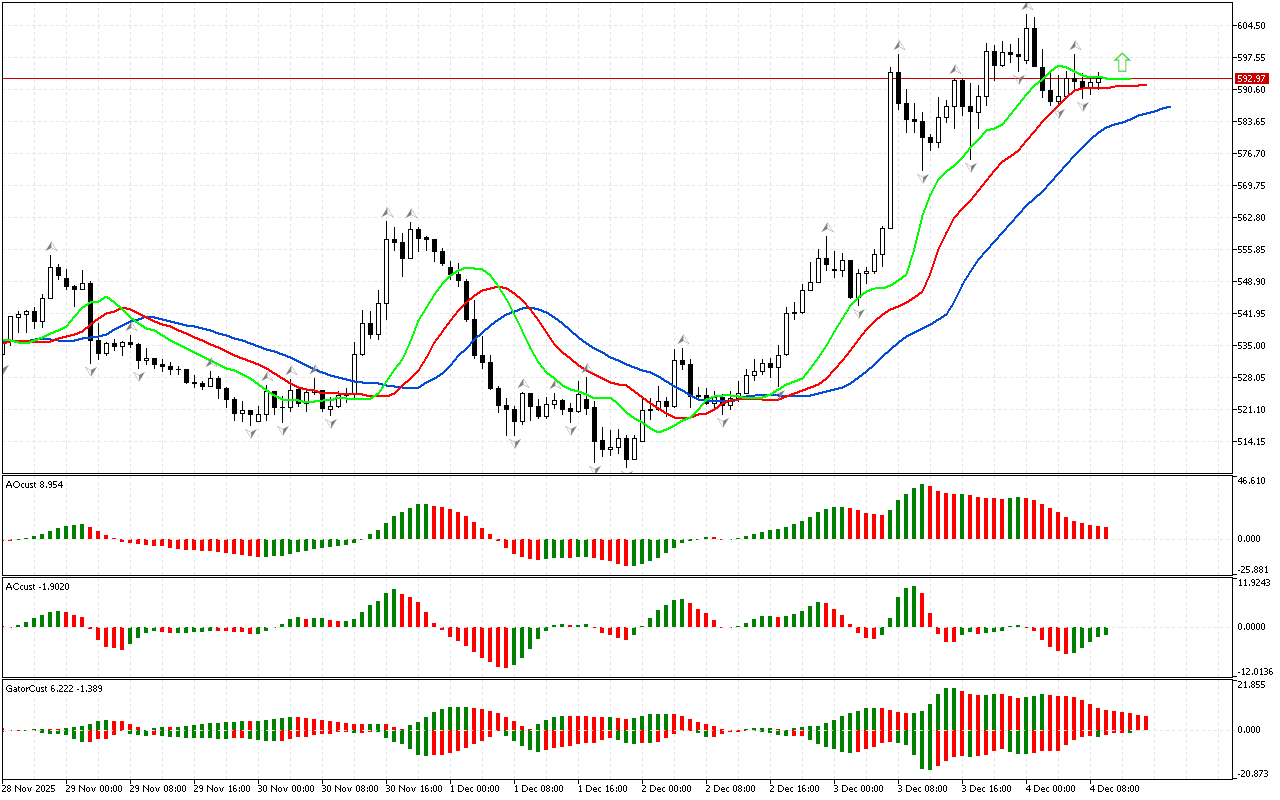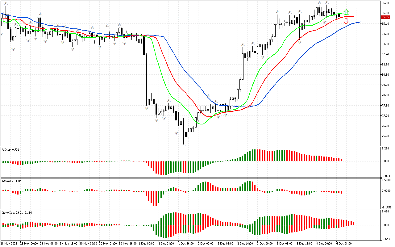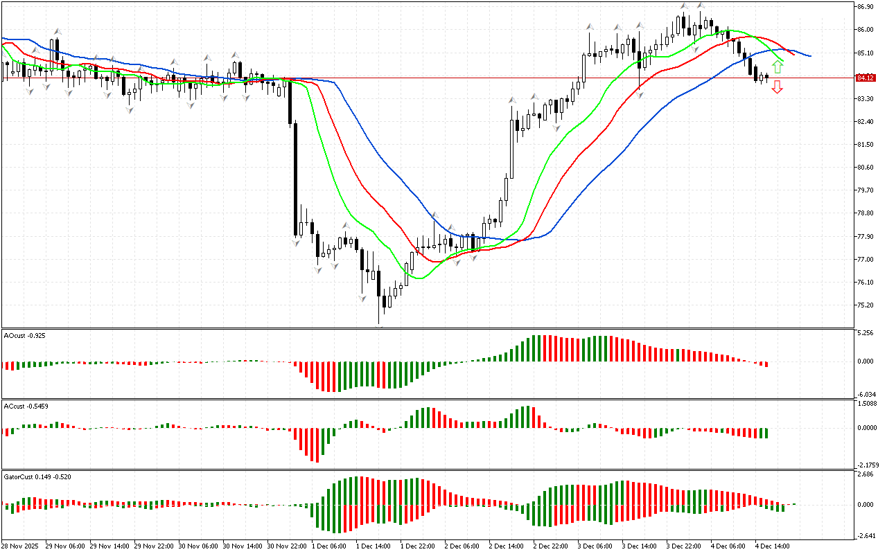 Narx grafikdagi Alligatorning og’zi ustida joylashgan yuqori fraktaldan yuqoriga ko’tarildi. Ushbu signal tufayli biz faza maydonini shimoliy deb belgilaymiz va…