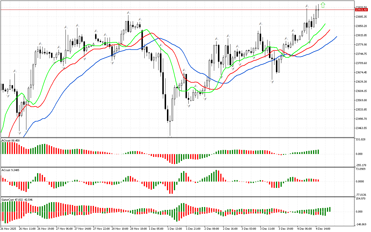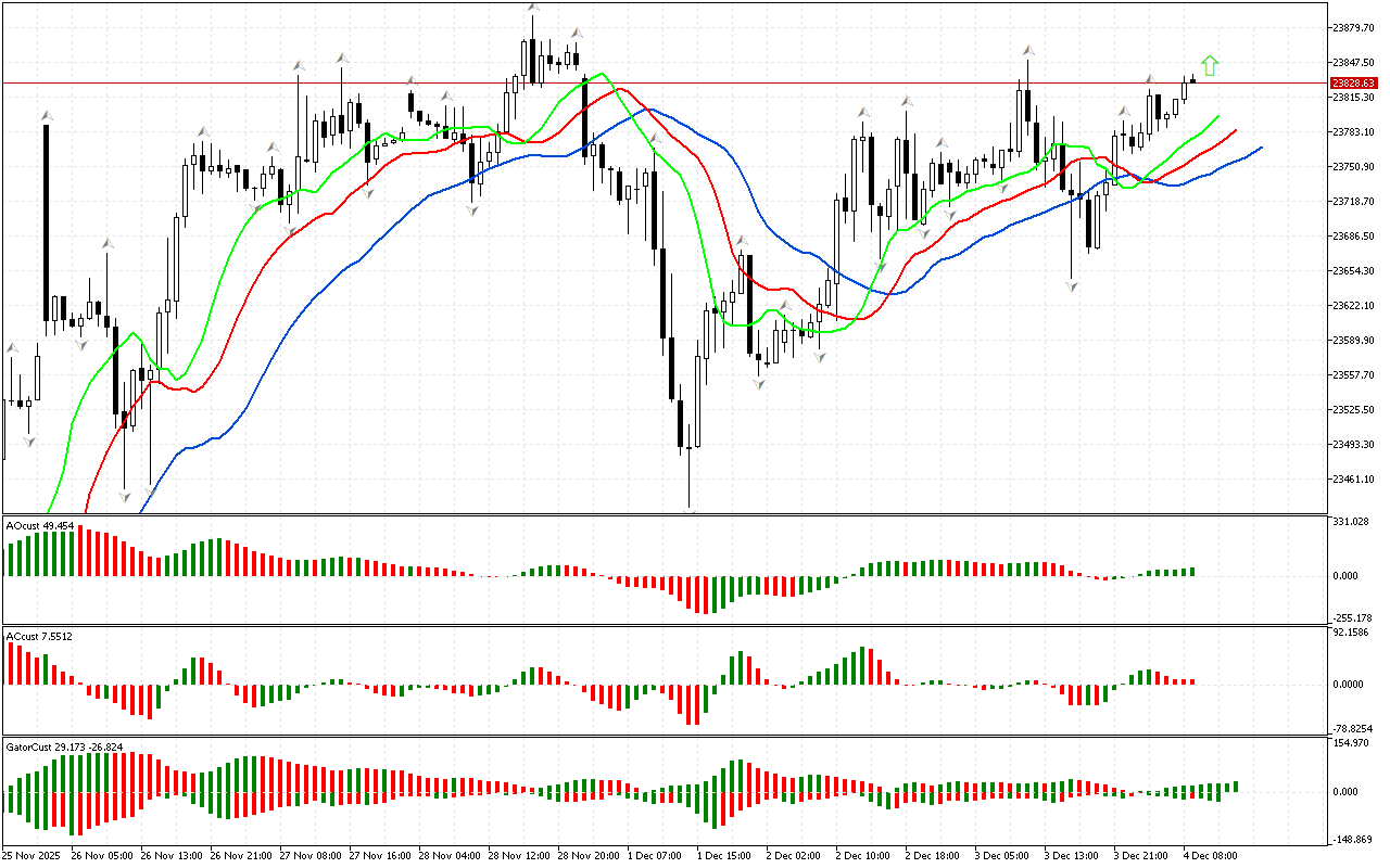 DAX 40 ga ko’ra, faza fazosi shimoliy deb belgilangan, chunki narx yuqori fraktaldan yuqoriga ko’tarilgan. Endi biz Bill Uilyams strategiyasi…