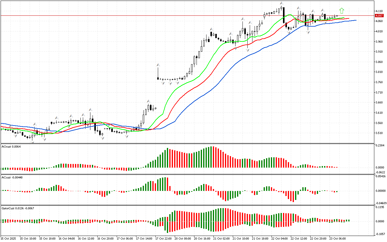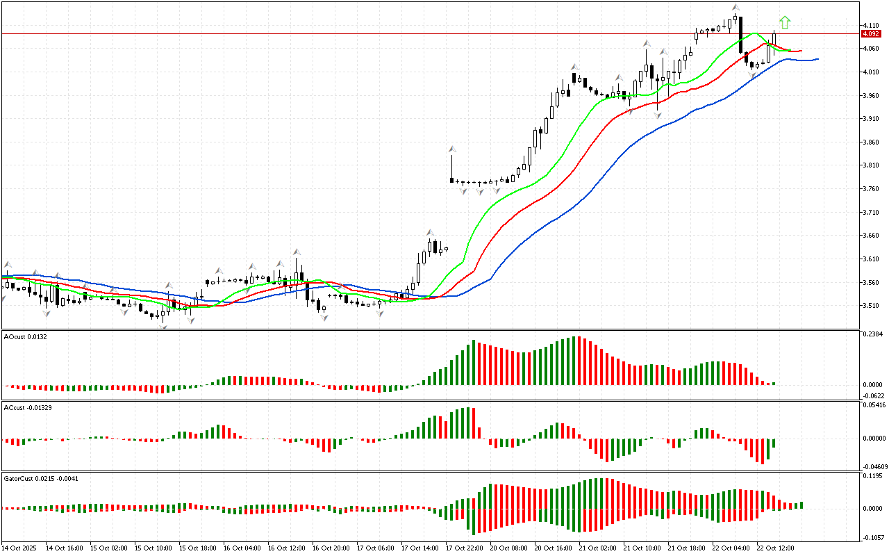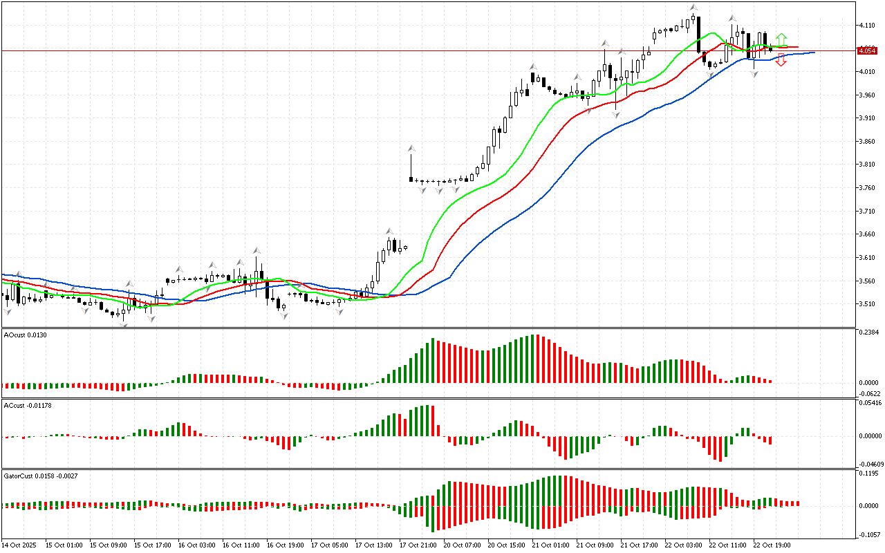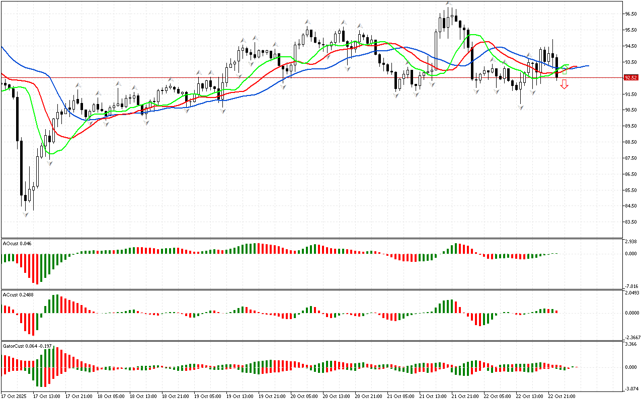 Ko’rib chiqish bozorning birinchi o’lchovini tahlil qilish bilan boshlanadi. Narx Alligatorning og’zidan tashqarida joylashgan pastki fraktaldan pastga tushdi. Shuning uchun…