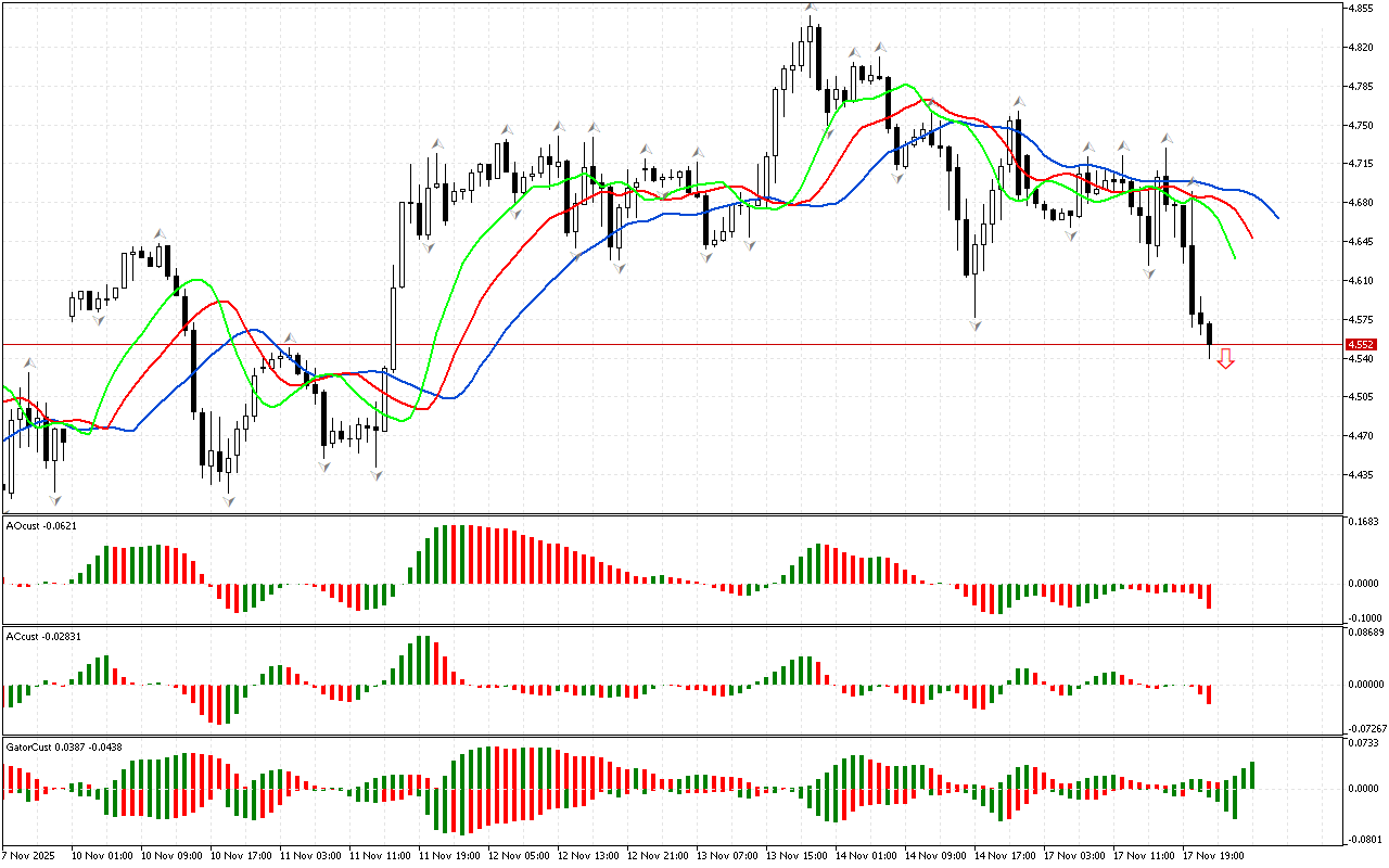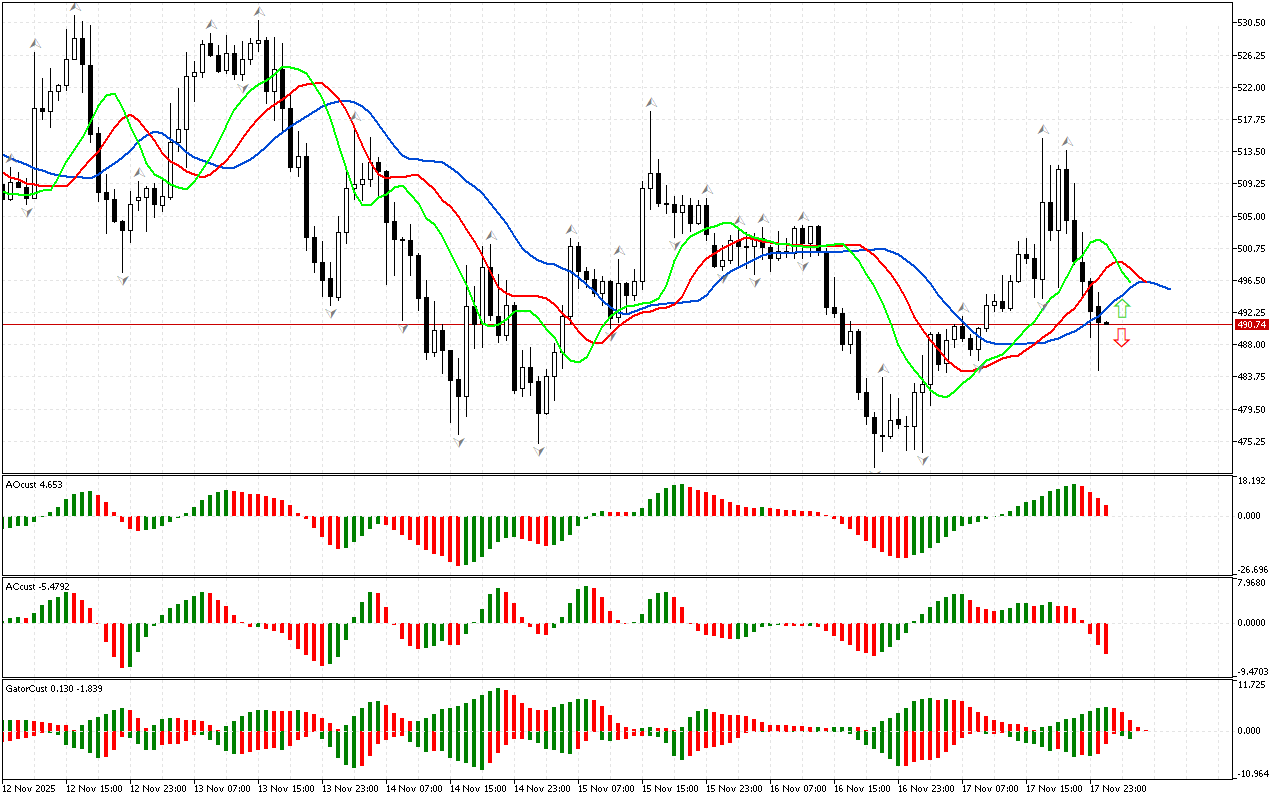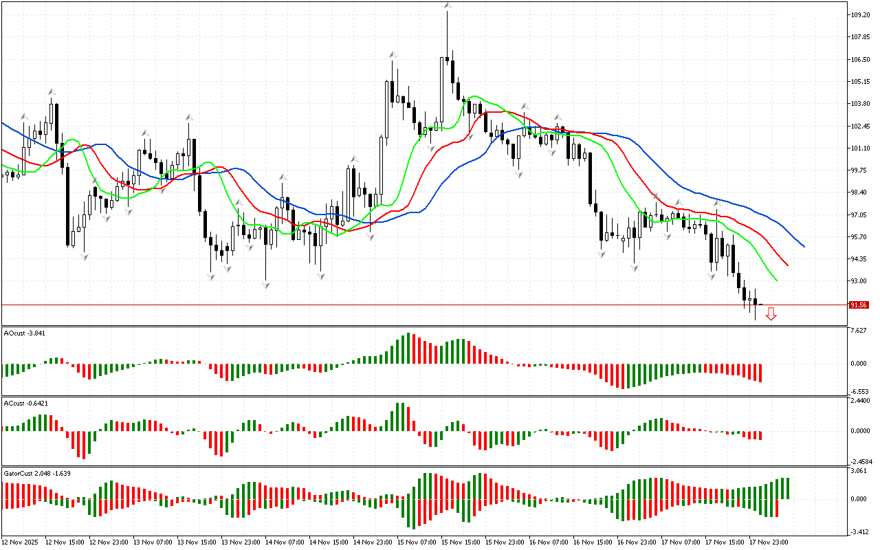 DAX 40 bo’yicha bozor kon’yunkturasi aniqlanmagan. Narx pastga tushmadi va fraktallarning hech biridan yuqoriga ko’tarilmadi. Shuning uchun boshqa ko’rsatkichlarning signallariga…
