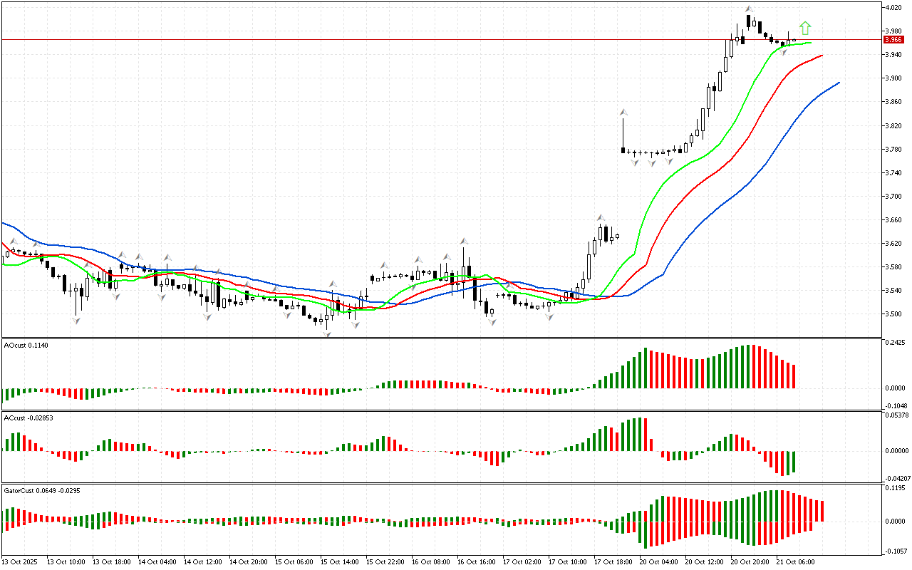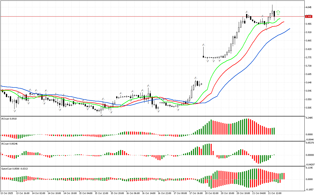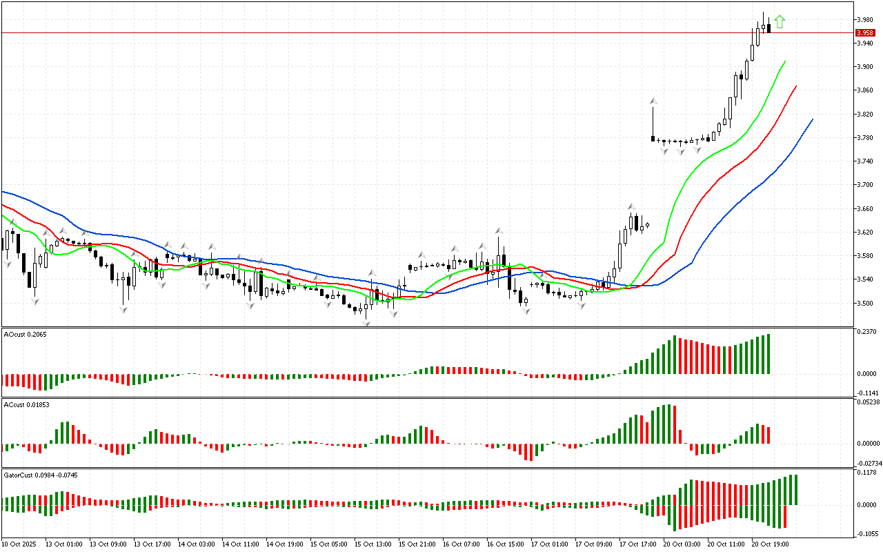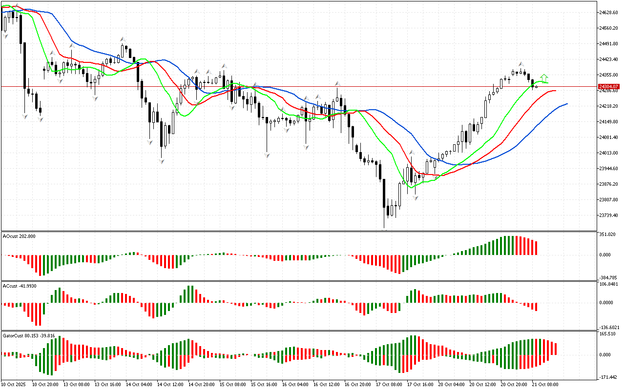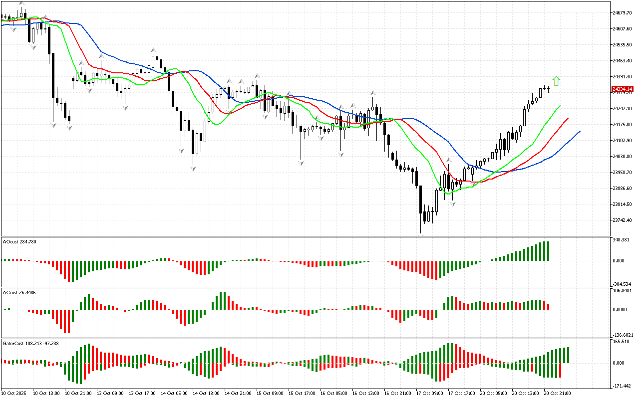 Narx grafikdagi Alligatorning og’zi ustida joylashgan yuqori fraktaldan yuqoriga ko’tarildi. Ushbu signal tufayli biz faza maydonini shimoliy deb belgilaymiz va…