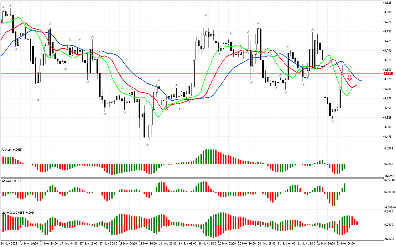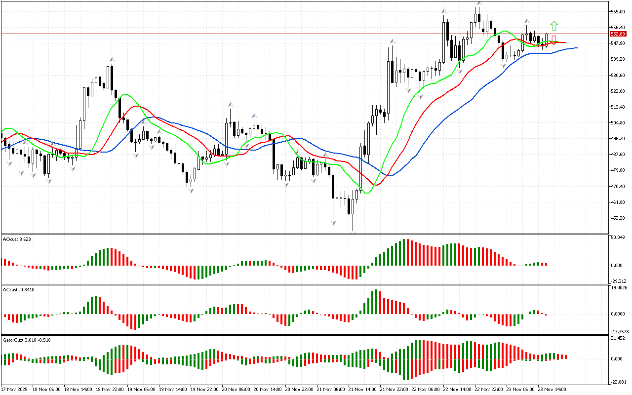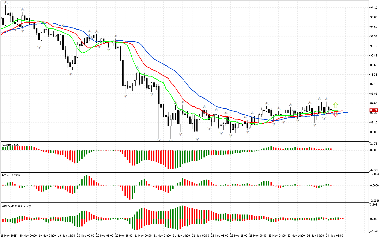 Qiymət qrafikdə Alligatorun ağzının üstündə yerləşən yuxarı fraktaldan yuxarı qalxdı. Bu siqnala görə biz faza məkanını şimal kimi təyin edirik…