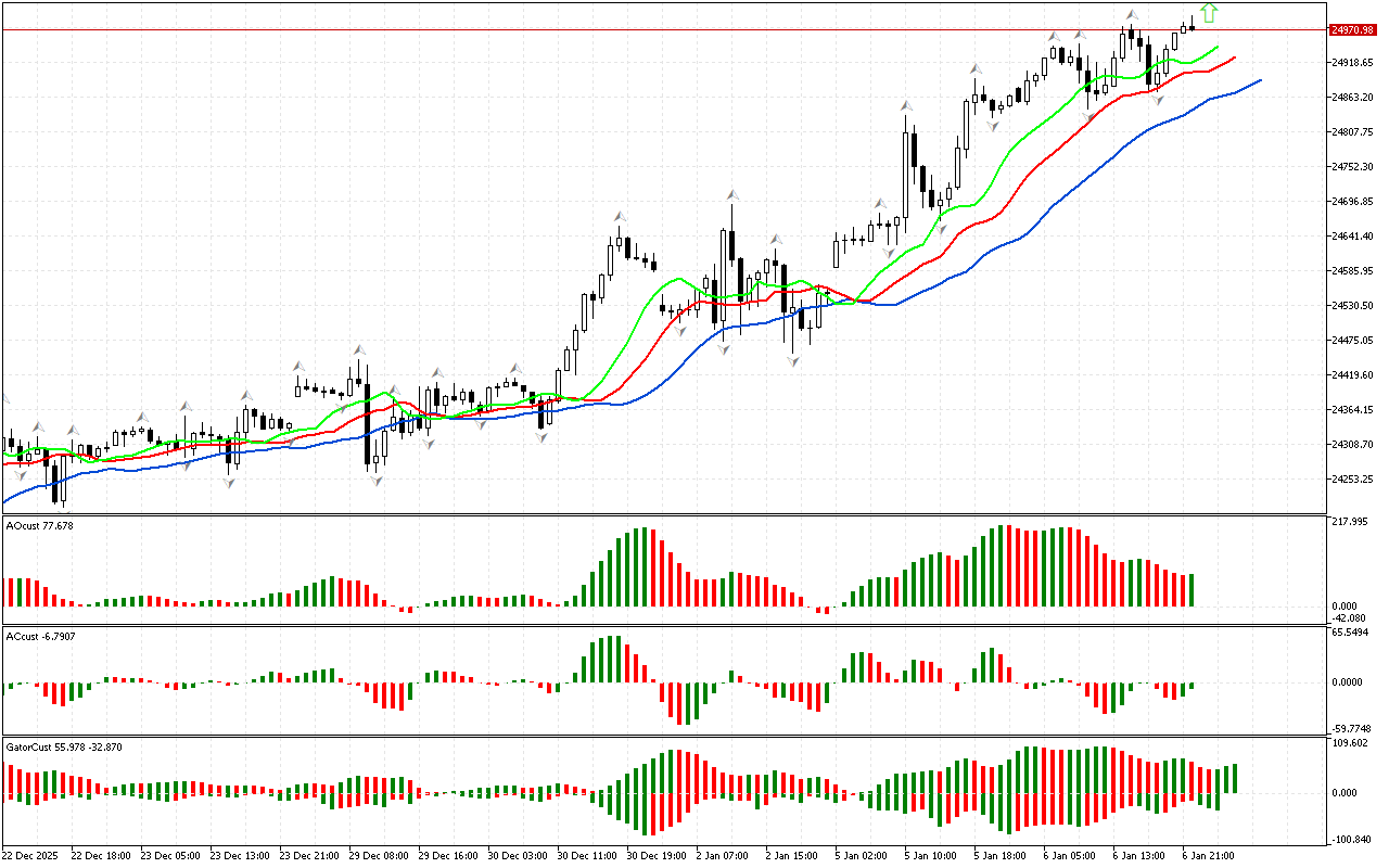 Qiymət qrafikdə Alligatorun ağzının üstündə yerləşən yuxarı fraktaldan yuxarı qalxdı. Bu siqnala görə biz faza məkanını şimal kimi təyin edirik…
