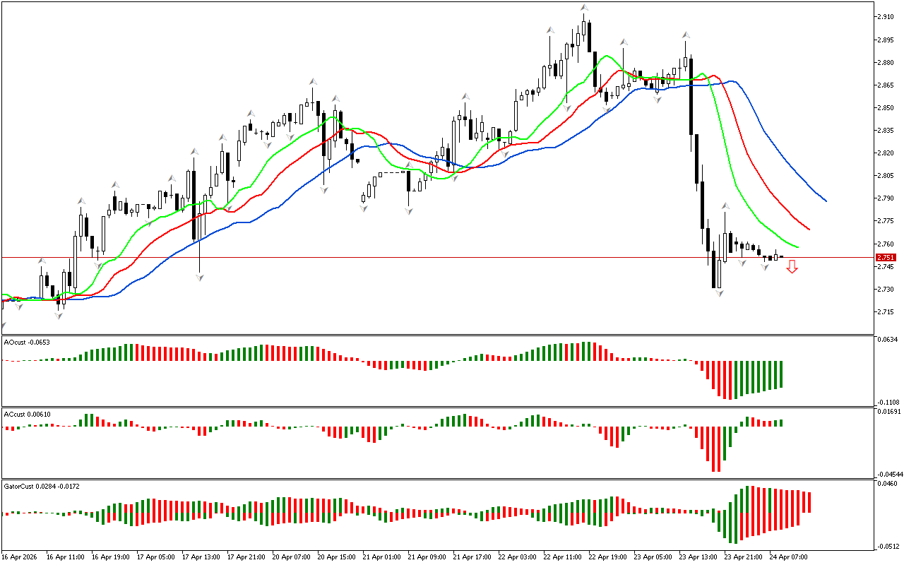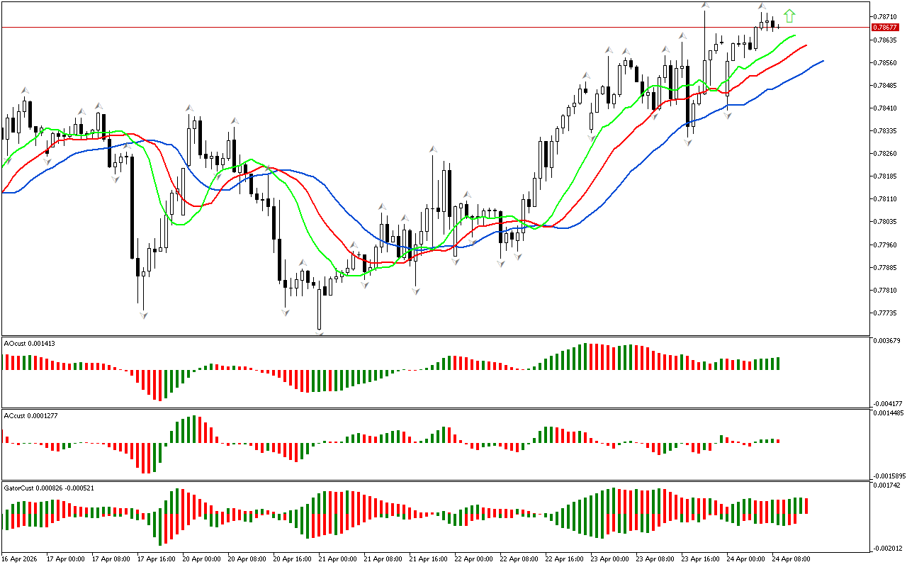 ตัวบ่งชี้ AO, AC และ Gator อยู่ในโซนสีเขียว ตัวบ่งชี้นี้คาดการณ์ว่าจะมีการเคลื่อนไหวอย่างต่อเนื่องในทิศทางเหนือ ความแข็งแกร่งและพลังงานของเฟสจะเพิ่มขึ้น เส้นของจระเข้ขยายออกและเปิดปากให้กว้างขึ้น