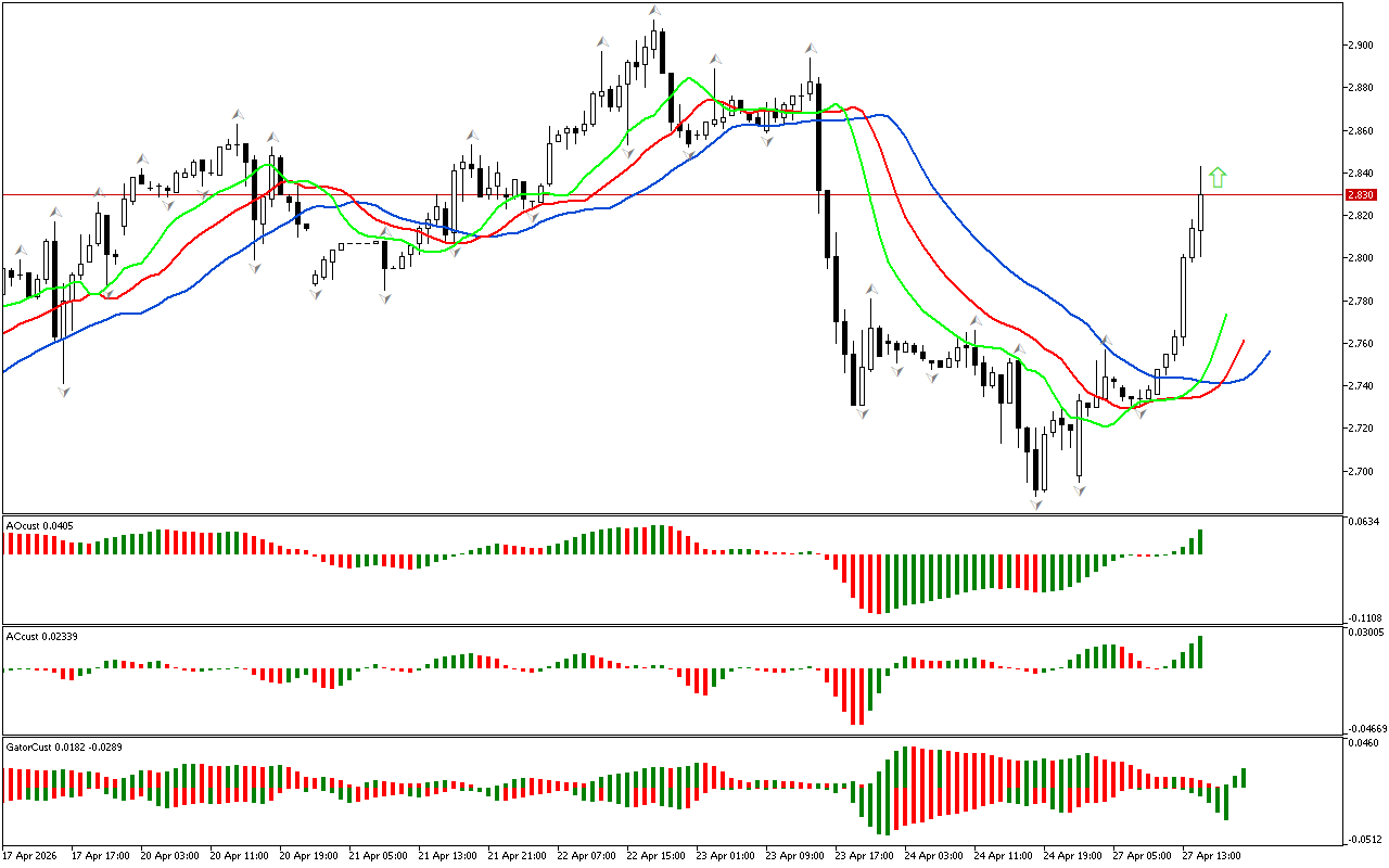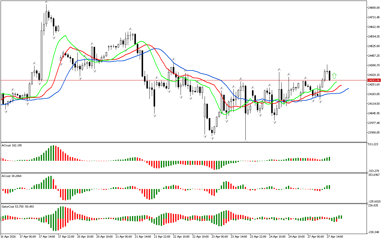 Ταυτόχρονα, το ιστόγραμμα Awesome Oscillator βρίσκεται επί του παρόντος πάνω από τη γραμμή μηδέν.