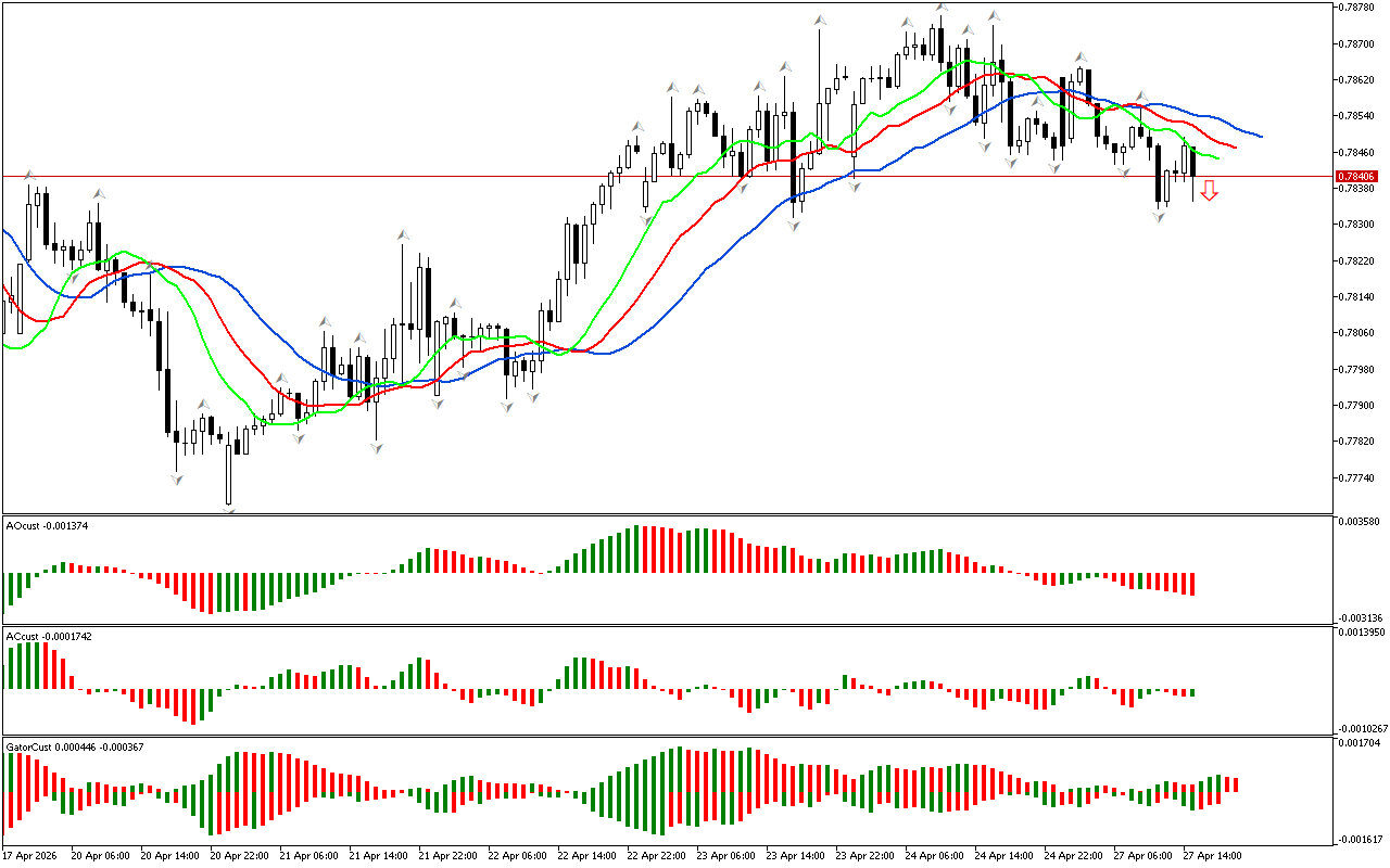 Σύμφωνα με το USDCHF, ο χώρος φάσης ορίζεται ως βόρειος, αφού η τιμή έχει ανέβει πάνω από το ανώτερο φράκταλ. Τώρα μπορούμε να εξετάσουμε σήματα από άλλες διαστάσεις της αγοράς στο πλαίσιο της στρατηγικής του Bill Williams.