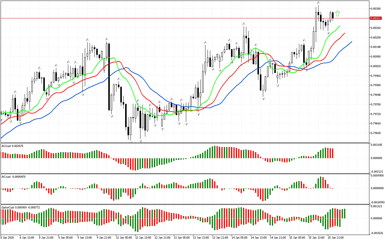 At the same time, the Awesome Oscillator histogram is currently above the zero line.