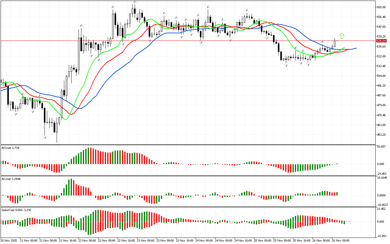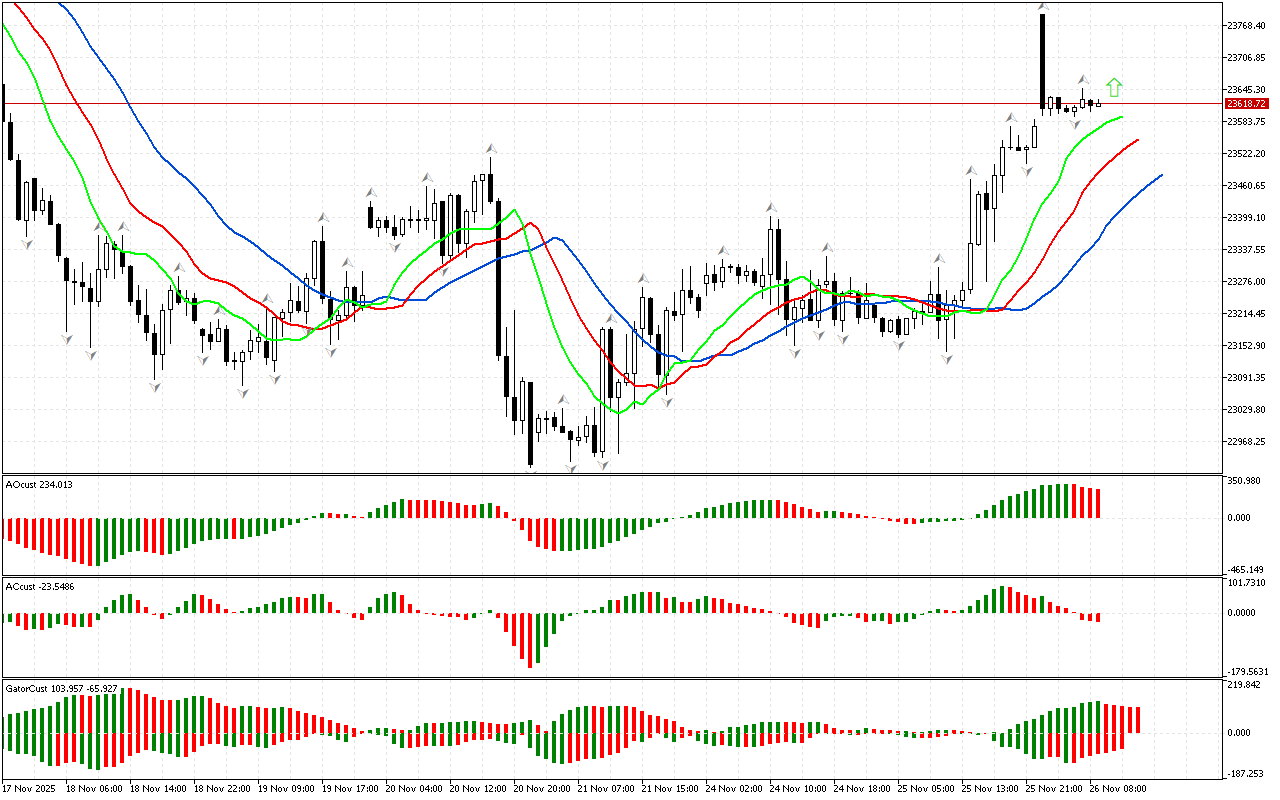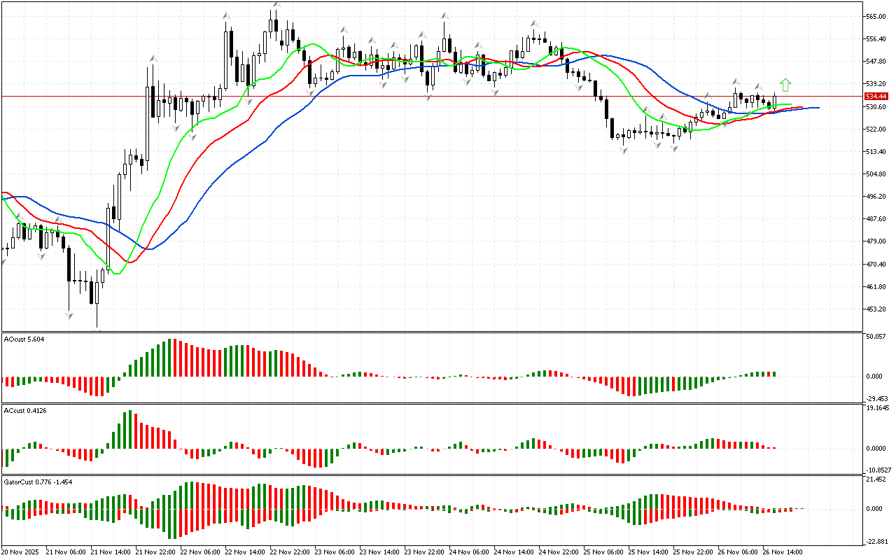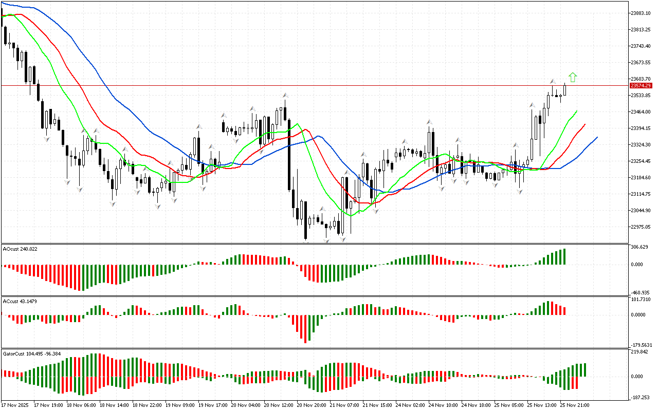 Графикада Аллигатордың аузының үстінде орналасқан жоғарғы фракталдан жоғары көтерілді. Осы сигналдың арқасында біз фазалық кеңістікті солтүстік деп анықтаймыз және нарықтың…