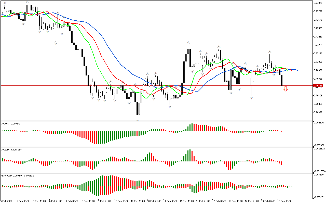 Gator көрсеткішінің гистограммасы әлі анық сигналды қалыптастырған жоқ. Гистограммалардың түсі өзгереді, бұл нарық фазасының өзгеруін көрсетеді.