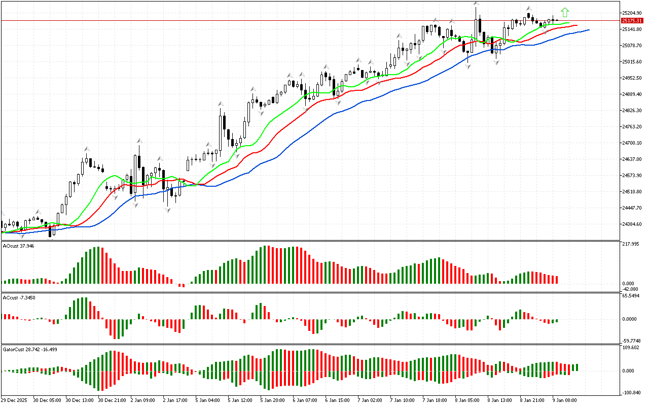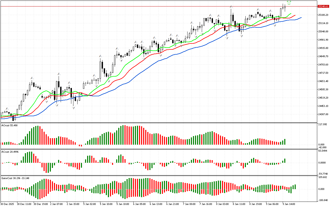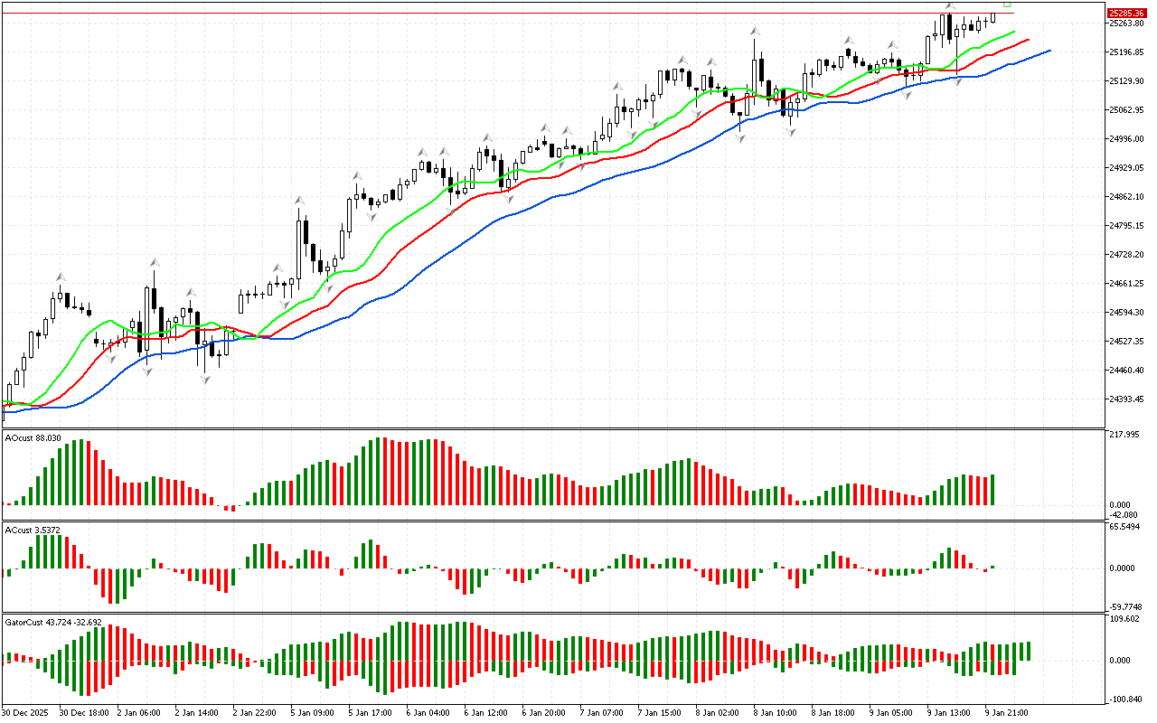 DAX 40 ылайык, фазалык мейкиндик түндүк деп аныкталат, анткени баасы жогорку фракталдан жогору көтөрүлгөн. Эми биз Билл Уильямстын стратегиясынын алкагында…