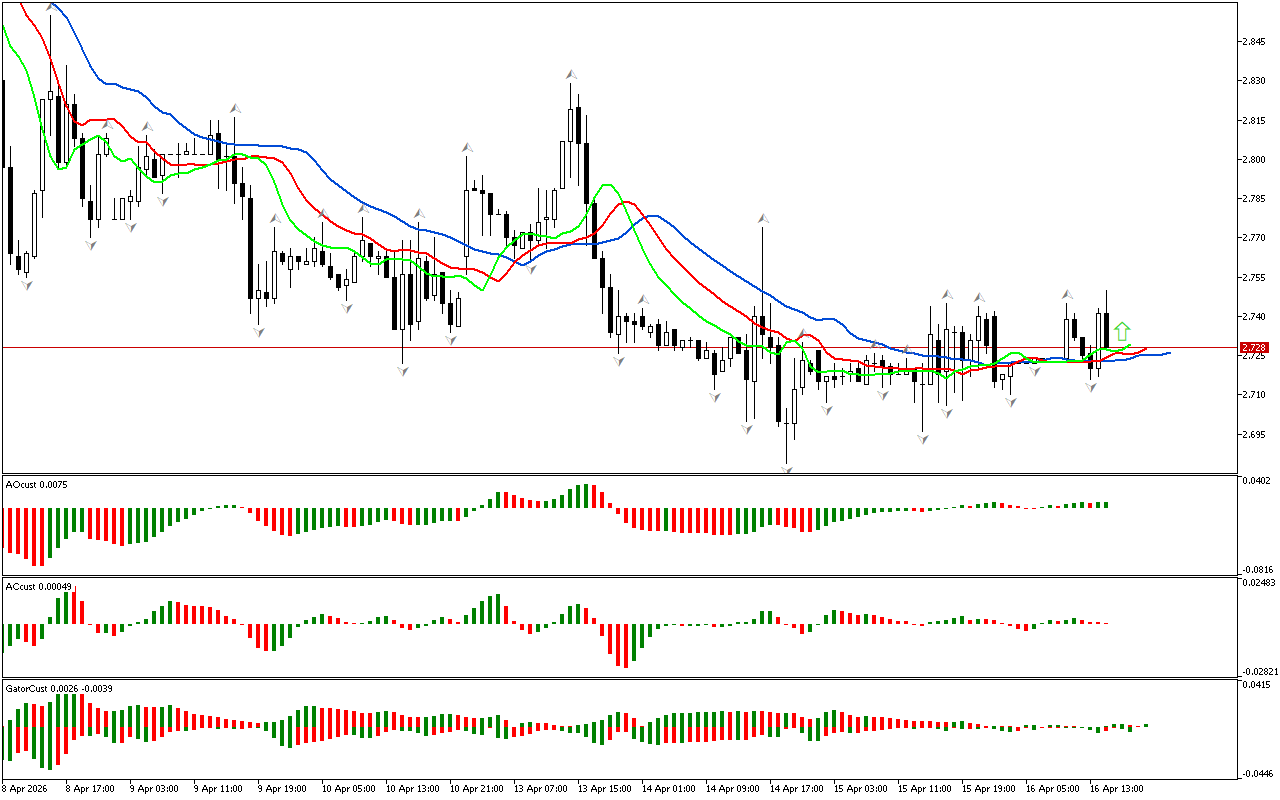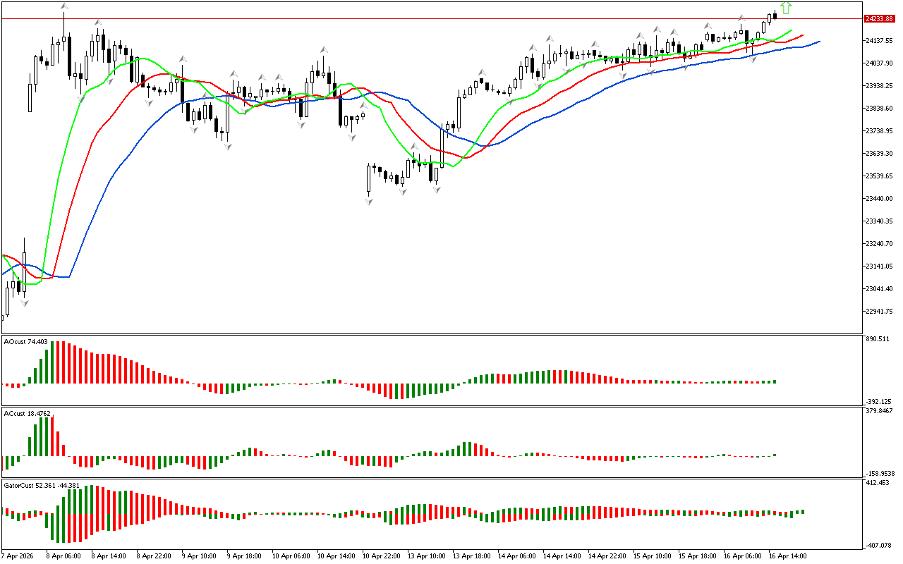 Gator индикаторунда катары менен бир нече жашыл мамычалар түзүлдү. Бул Аллигатордун ачка экенин жана табити көбөйүп жатканын көрсөтөт.