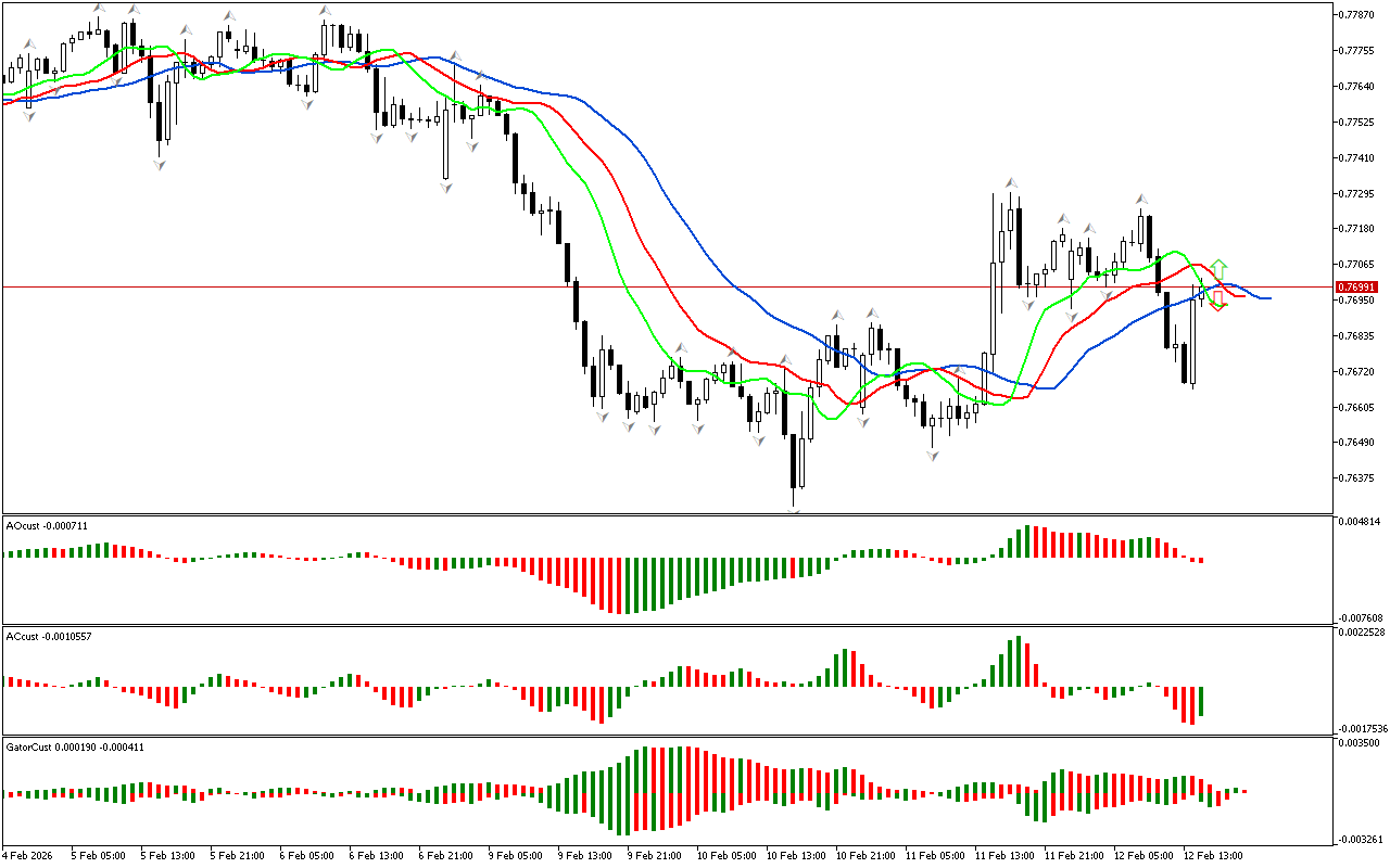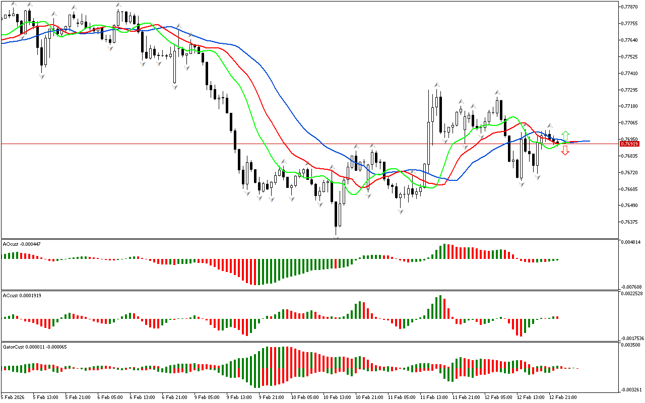 Колір гістограм індикатора Gator змінюється, тому цей індикатор ще не сформував чіткого сигналу.