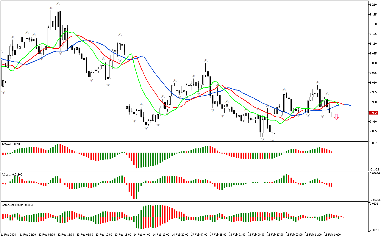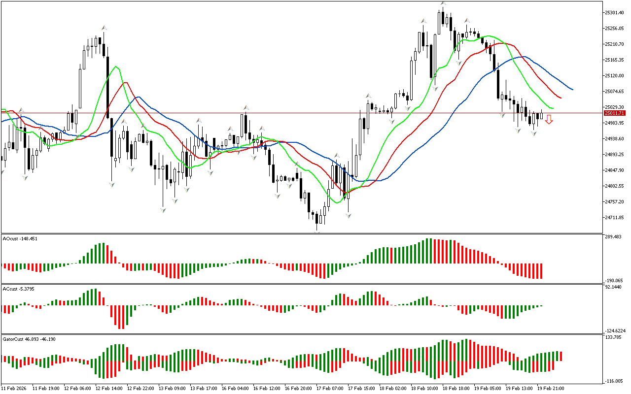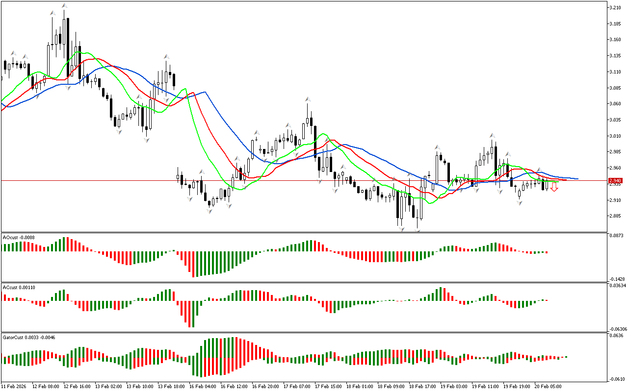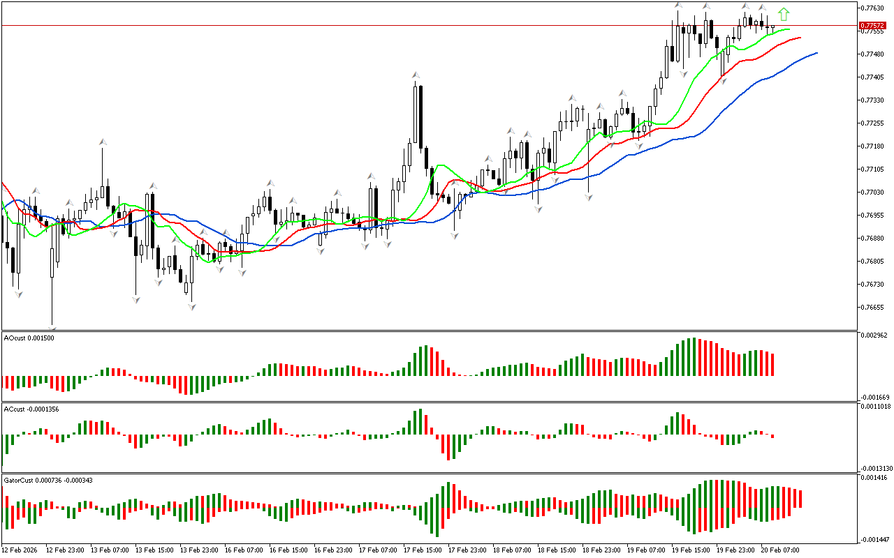 Shu bilan birga, AC va AO indikatorlari qizil rangga aylandi. Bu yuqoriga ko’tarilgan impulsning kuchi va energiyasi sekinlashuvga ega ekanligini ko’rsatadi. Bu chuqurroq tuzatishning rivojlanishiga yoki trendning o’zgarishiga olib kelishi mumkin. Biroq, shimoliy harakat stsenariysi, narx qizil Alligator chizig’idan yuqori bo’lib qolsa, keng tarqalgan bo’lib qoladi.