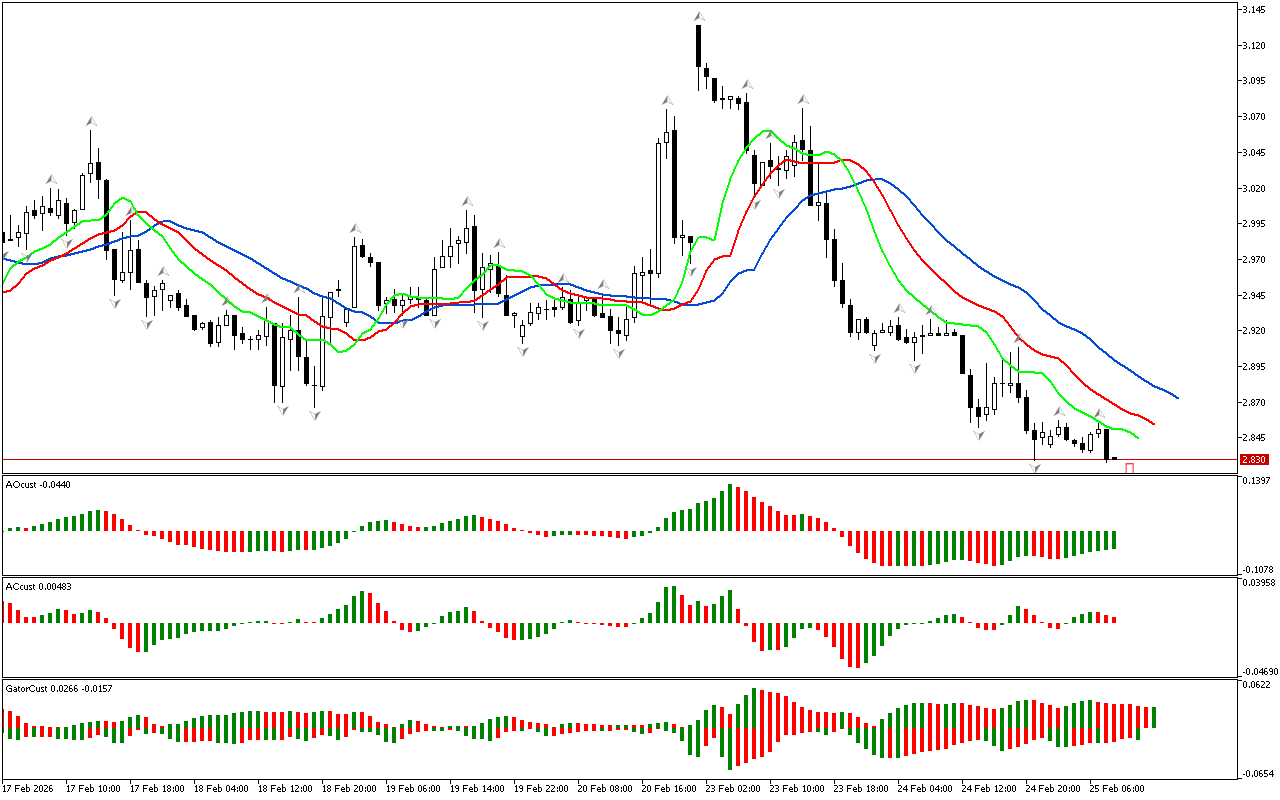 Gator indikatorida bir qator qizil chiziqlar chizilgan. Ushbu signal tuzatishning shakllanishini ko’rsatadi.