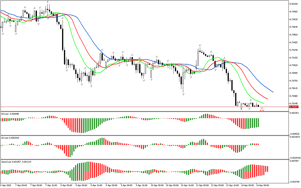Shuni ham ta’kidlash joizki, oxirgi bir necha barlar AC indikatorida yashil rangda. Biroq, gistogramma nol belgisi ostida. Bu signal ikkalasini ham ko’rsatishi mumkin: tuzatish rivojlanishi yoki harakatning teskari o’zgarishi. Shunga qaramay, narx Alligatorning qizil chizig’idan past bo’lsa, pastga siljish keng tarqalgan bo’lib qoladi.