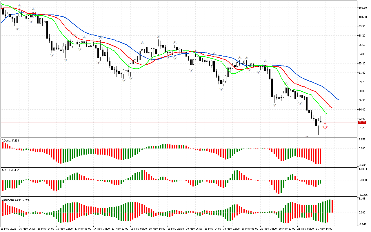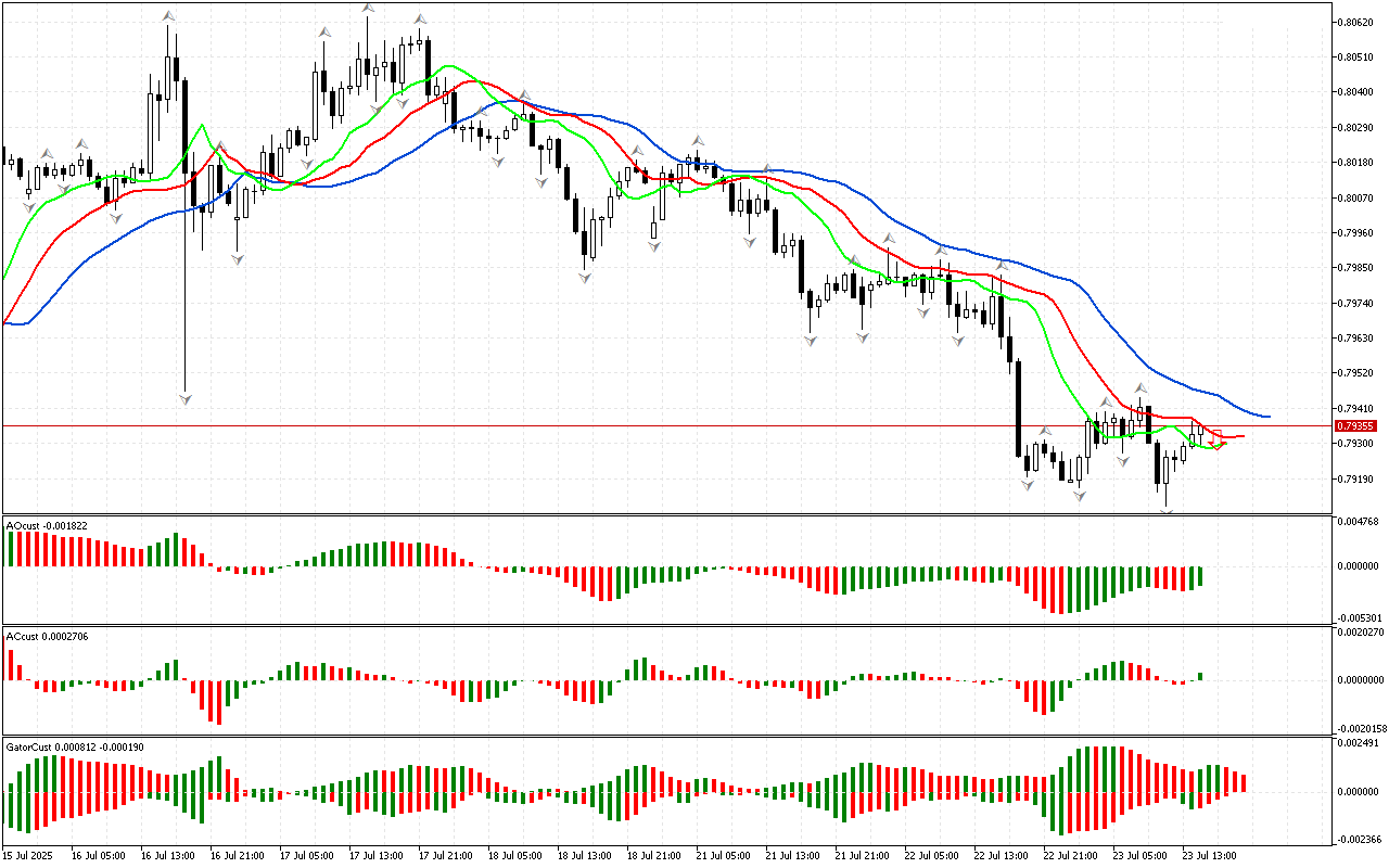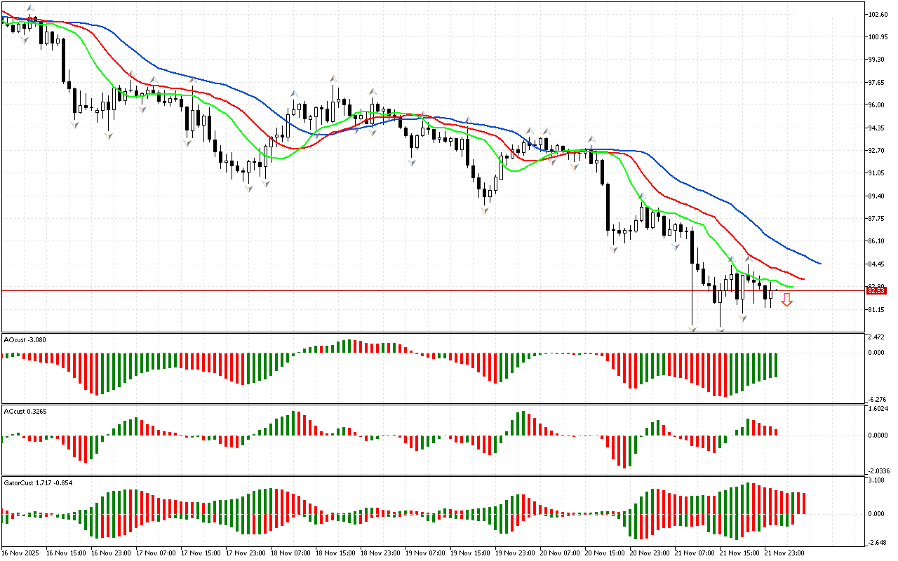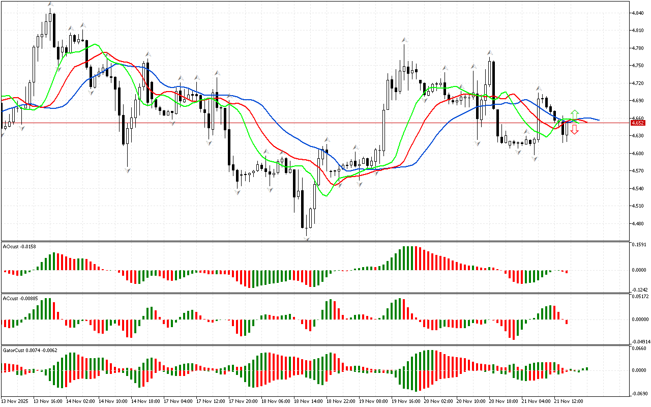 На почетку прегледа анализирамо прво мерење тржишта. Цена је пробила доњи фрактал који се налази изван ушћа Алигатора, тако да…