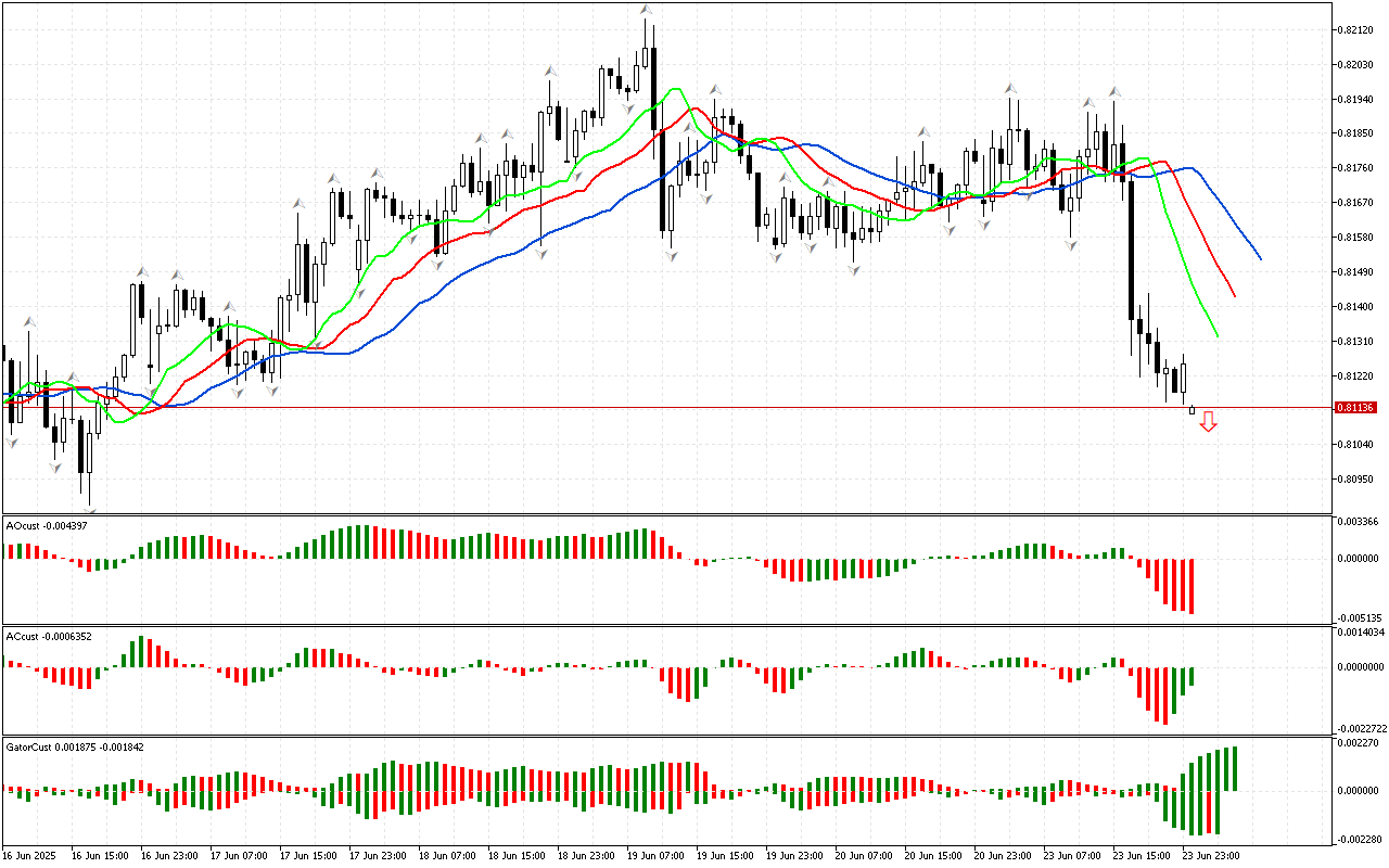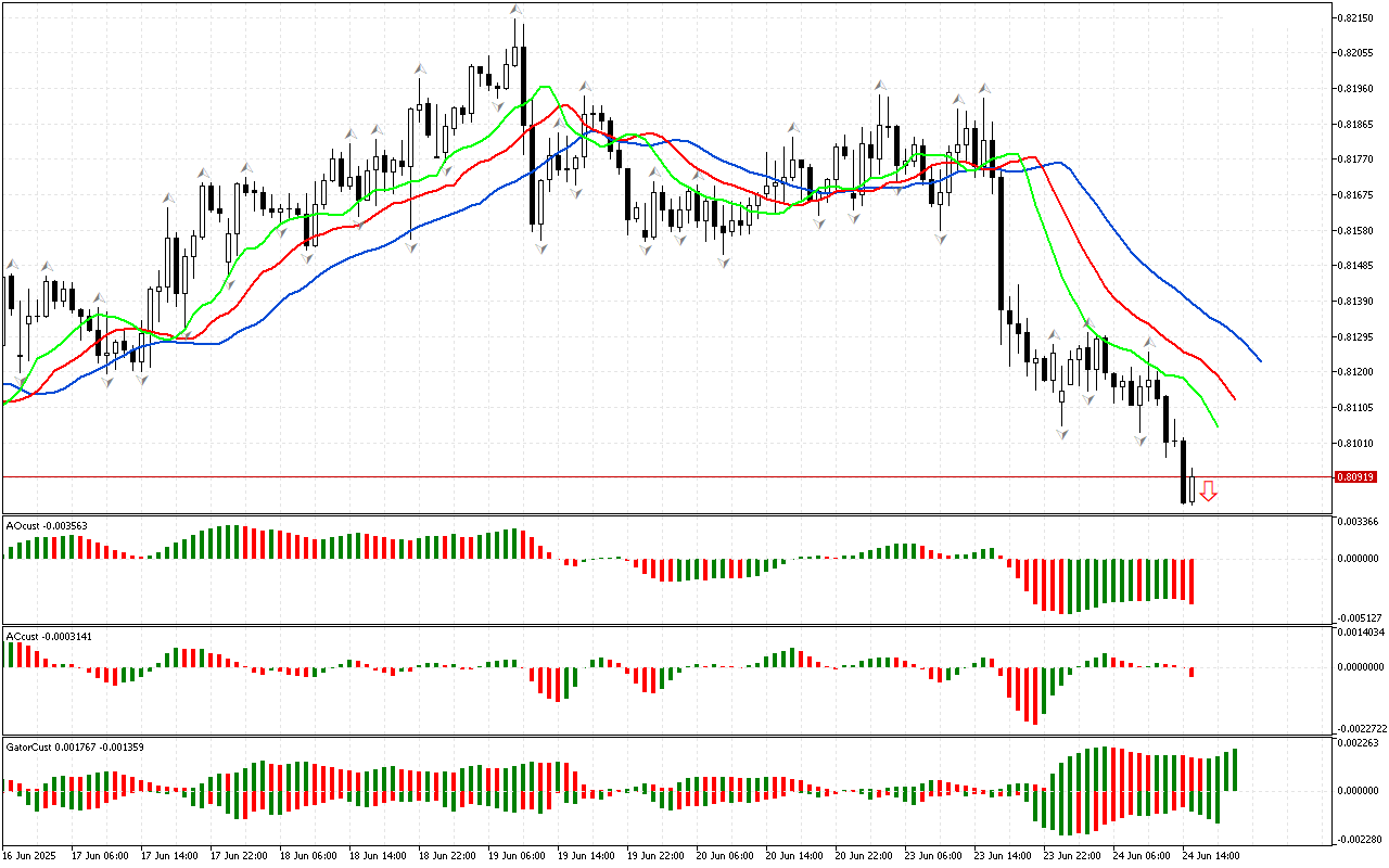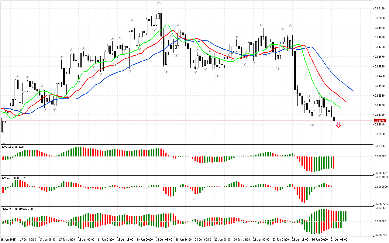 На почетку прегледа анализирамо прво мерење тржишта. Цена је пробила доњи фрактал који се налази изван ушћа Алигатора, тако да…