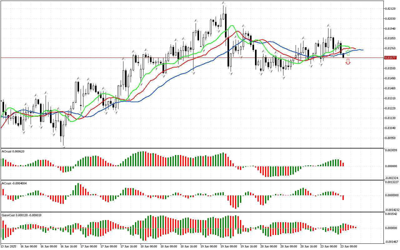 На почетку прегледа анализирамо прво мерење тржишта. Цена је пробила доњи фрактал који се налази изван ушћа Алигатора, тако да…