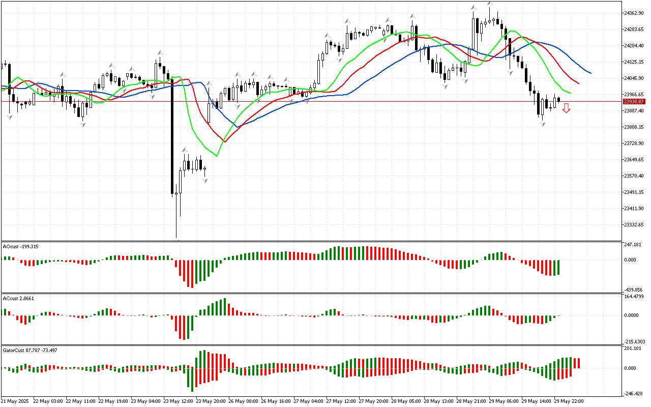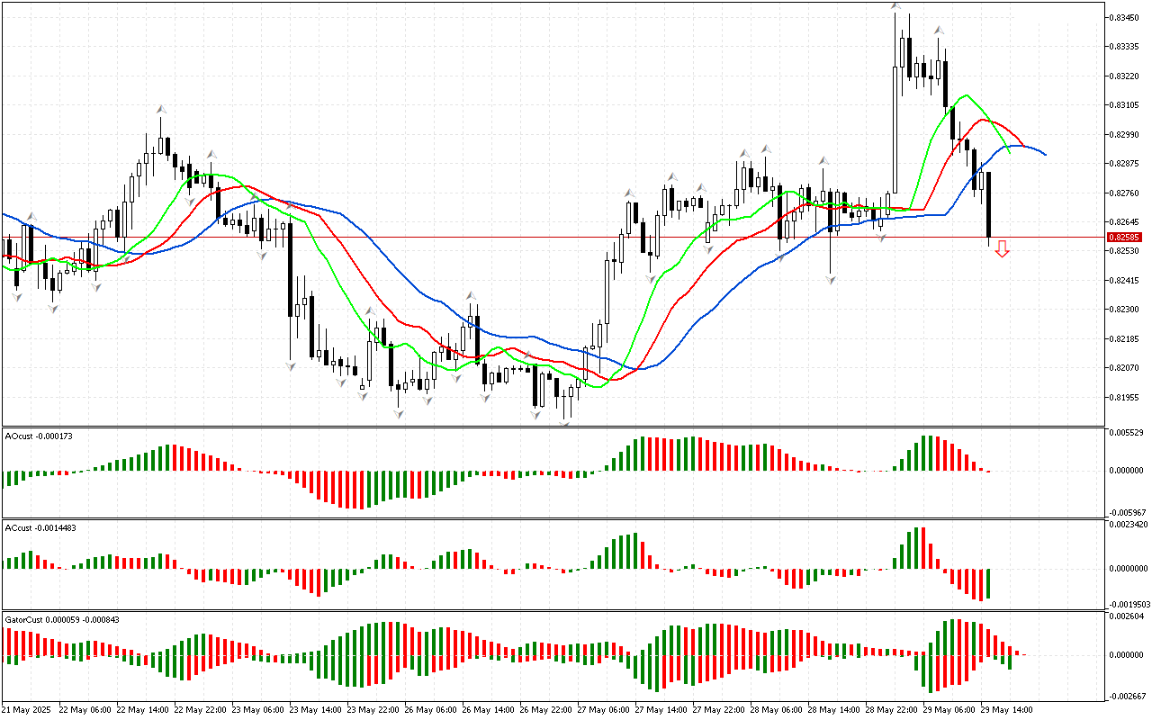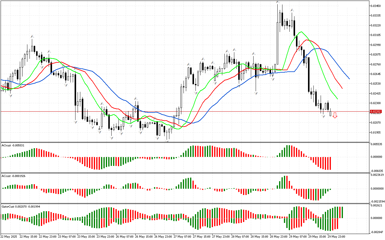 На почетку прегледа анализирамо прво мерење тржишта. Цена је пробила доњи фрактал који се налази изван ушћа Алигатора, тако да…