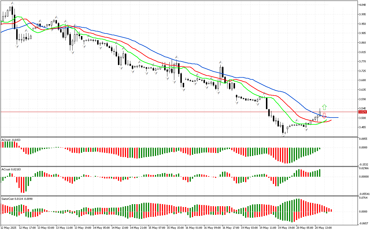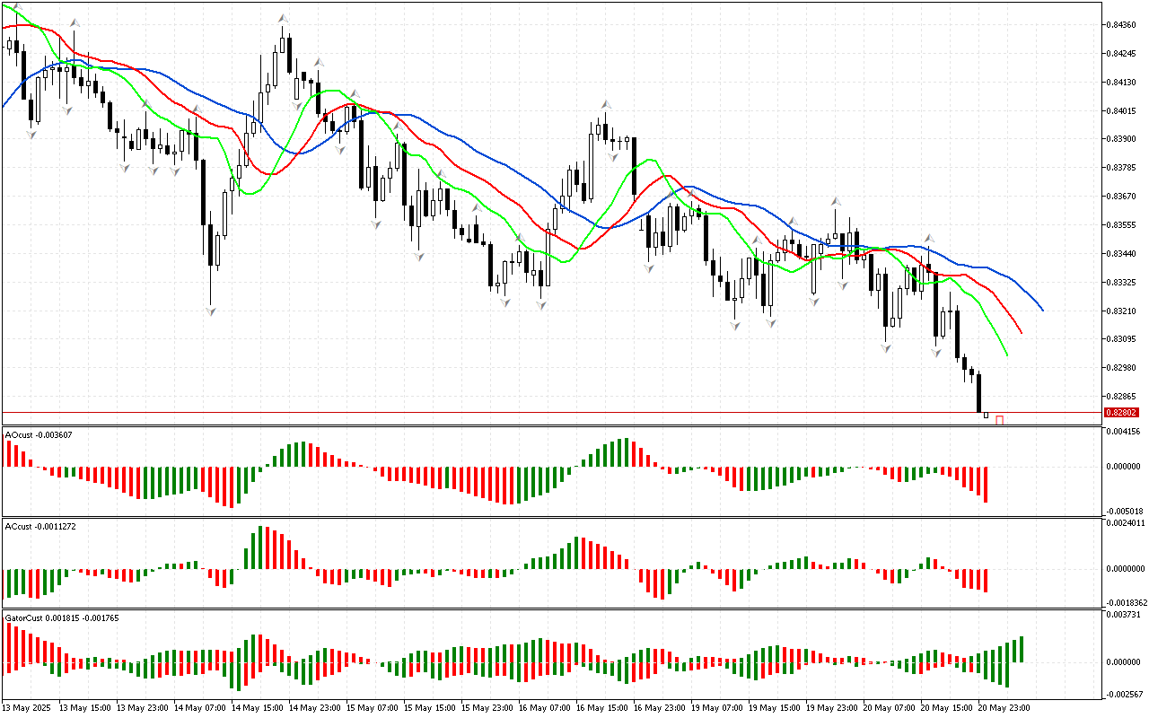 На почетку прегледа анализирамо прво мерење тржишта. Цена је пробила доњи фрактал који се налази изван ушћа Алигатора, тако да…
