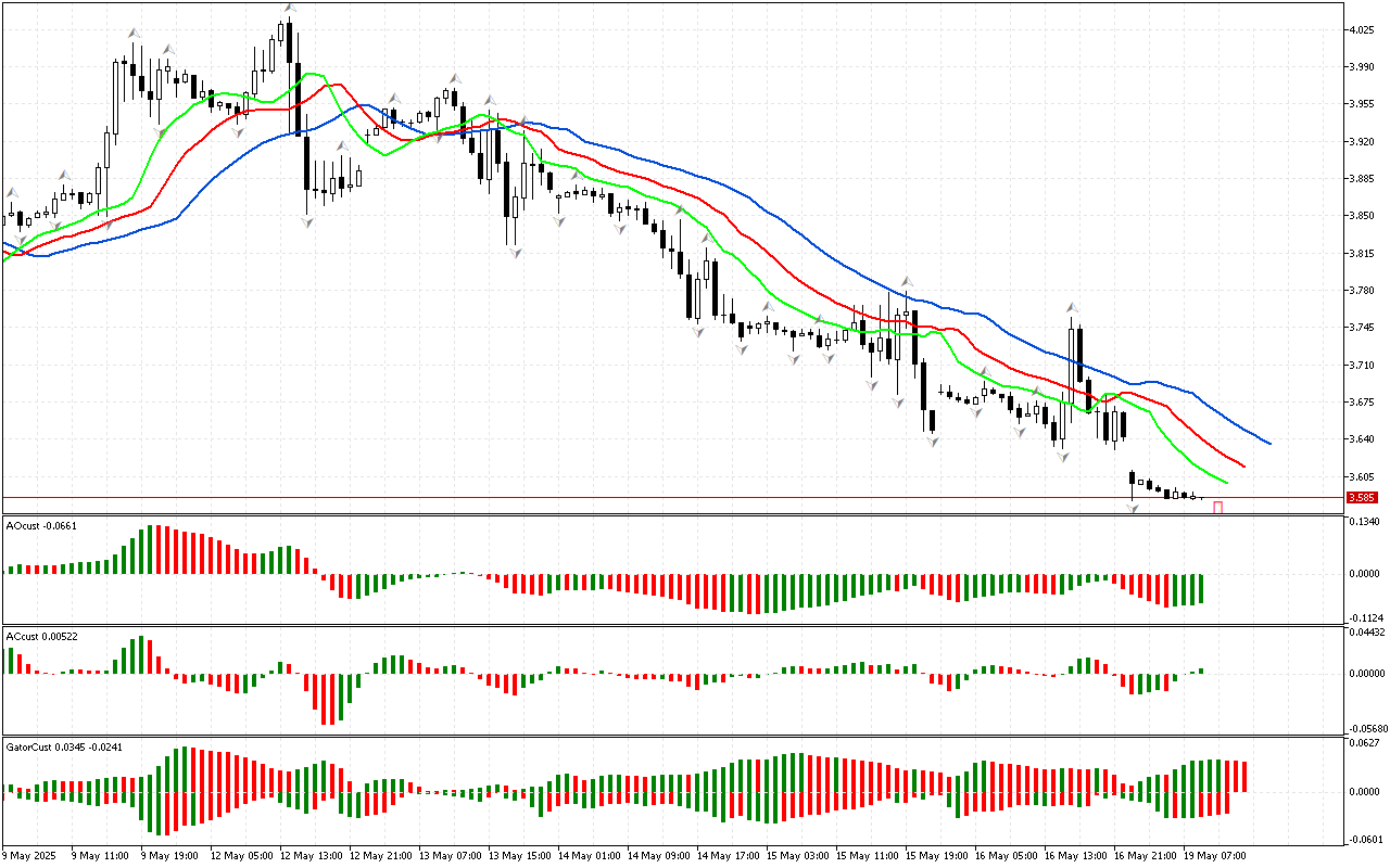 На почетку прегледа анализирамо прво мерење тржишта. Цена је пробила доњи фрактал који се налази изван ушћа Алигатора, тако да…