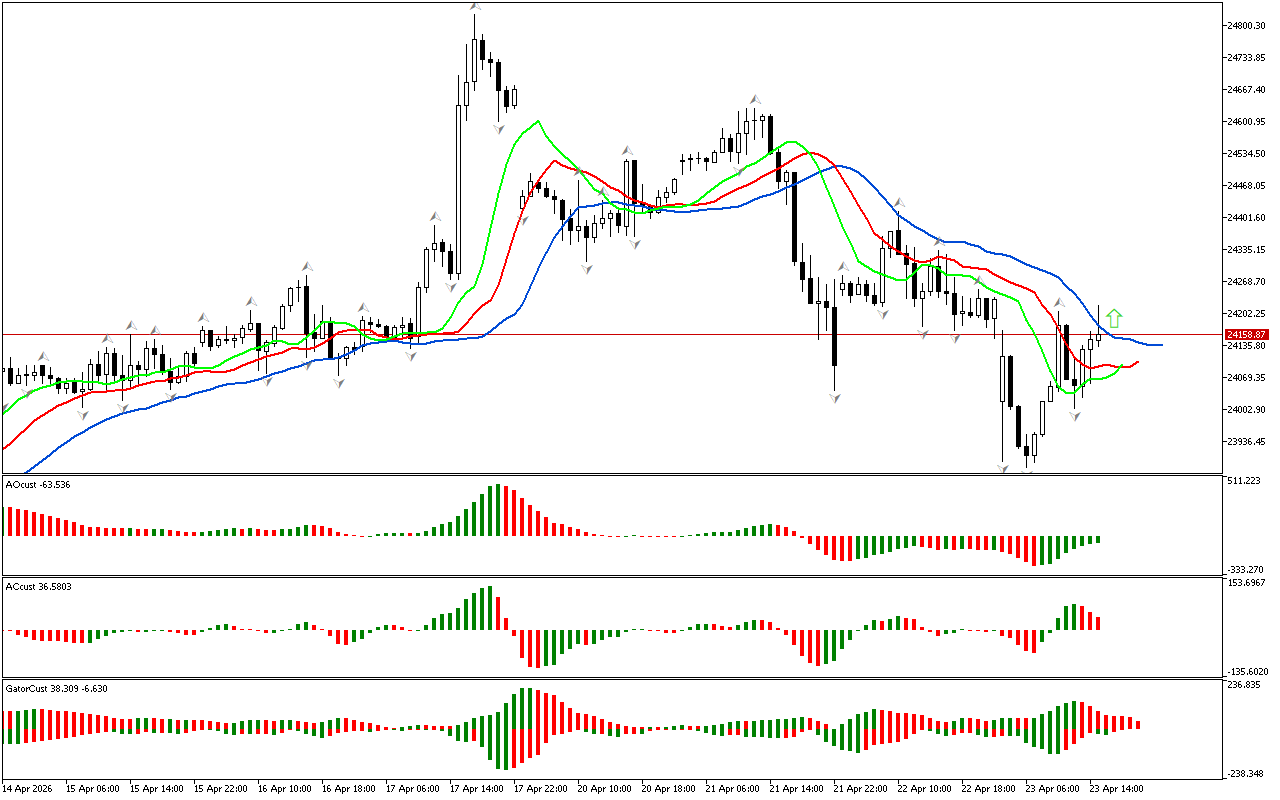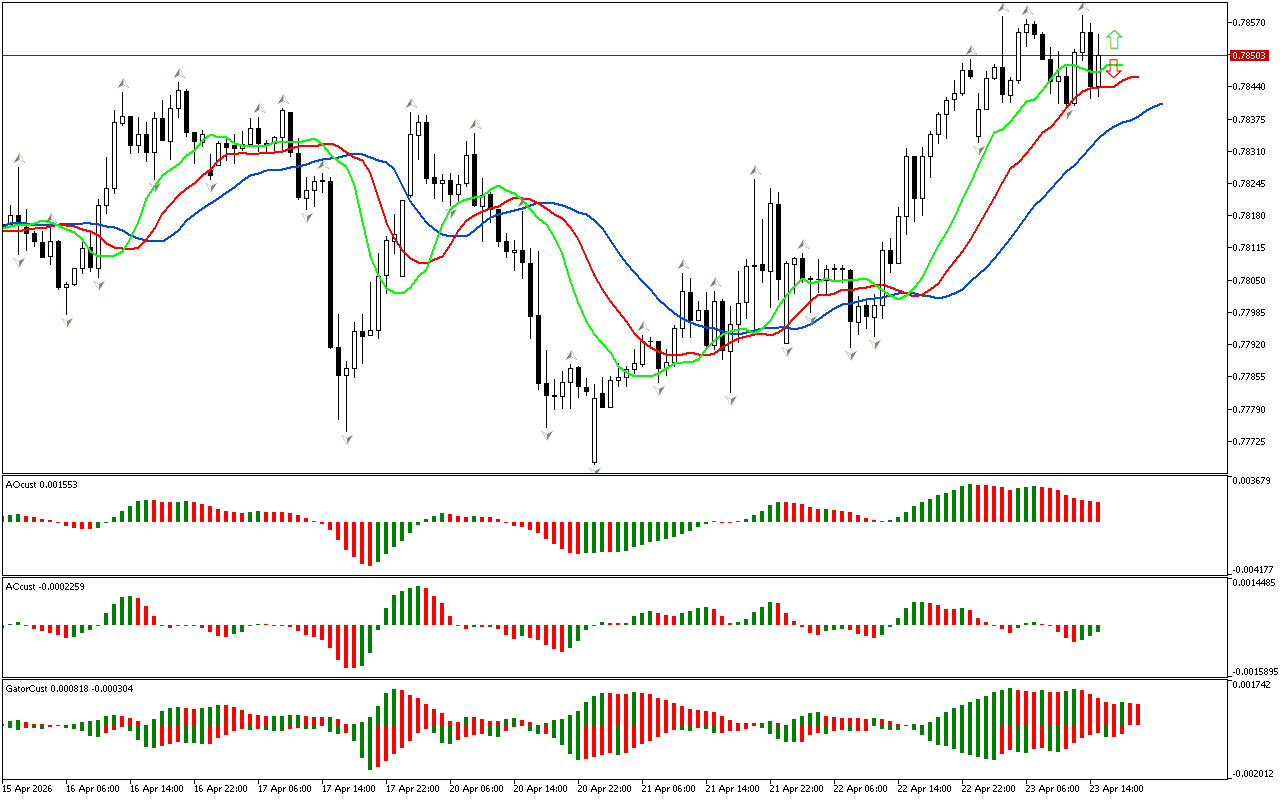 Алигаторске линије су поредане у северном правцу, а уста су отворена. То значи да пре свега, треба обратити пажњу на појаву горњих фрактала. Пробој таквог фрактала ће бити сигнал за нас, дефинишући тржишну фазу као северну.