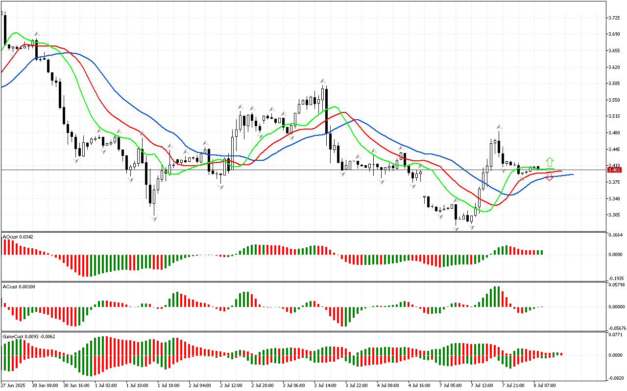 Ситуація на ринку щодо Natural Gas не визначена. Ціна не опускалася нижче і не піднімалася вище жодного з фракталів. Тому…