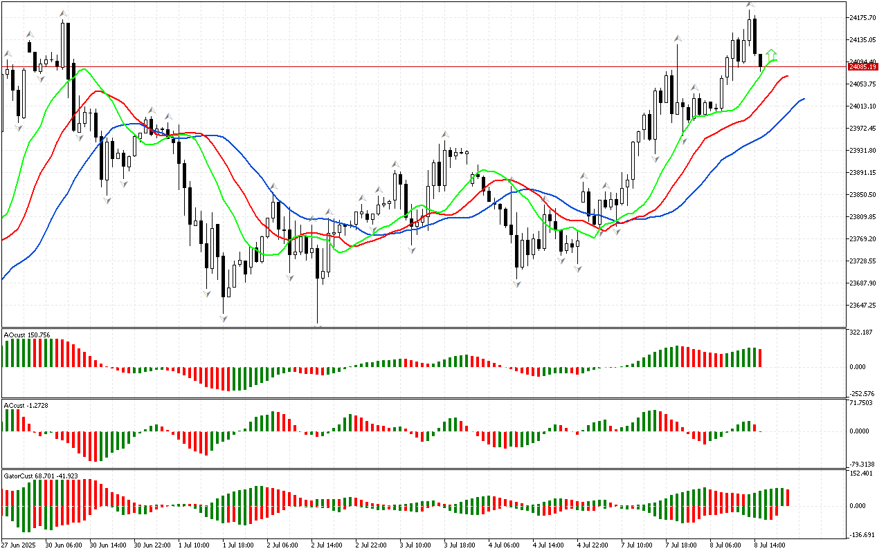 Ціна піднялася вище верхнього фрактала, розташованого над пащею Алігатора на графіку. Завдяки цьому сигналу ми визначаємо фазовий простір як північний…